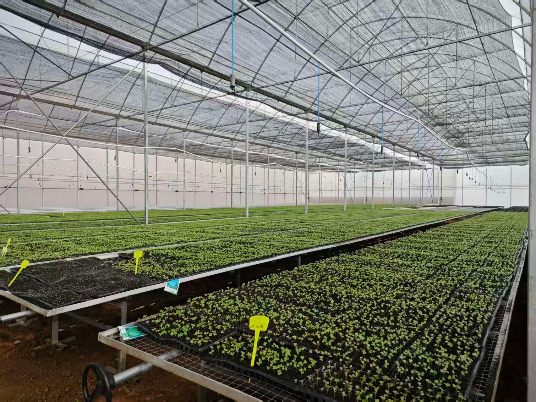 云南斌臻商贸有限公司育苗基地内,全自动悬盘播种机高效运转,工人们熟练完成装土、打塘、点籽、覆土等工序,一派繁忙有序的育苗景象。基地负责人表示,今年已培育番茄、辣椒、西葫芦、莴笋、甘蓝等优质蔬菜苗200余万株,首批菜苗已被抢购并完成移栽,番茄、无筋豆苗供不应求,当前第二批菜苗培育工作正有序开展。
