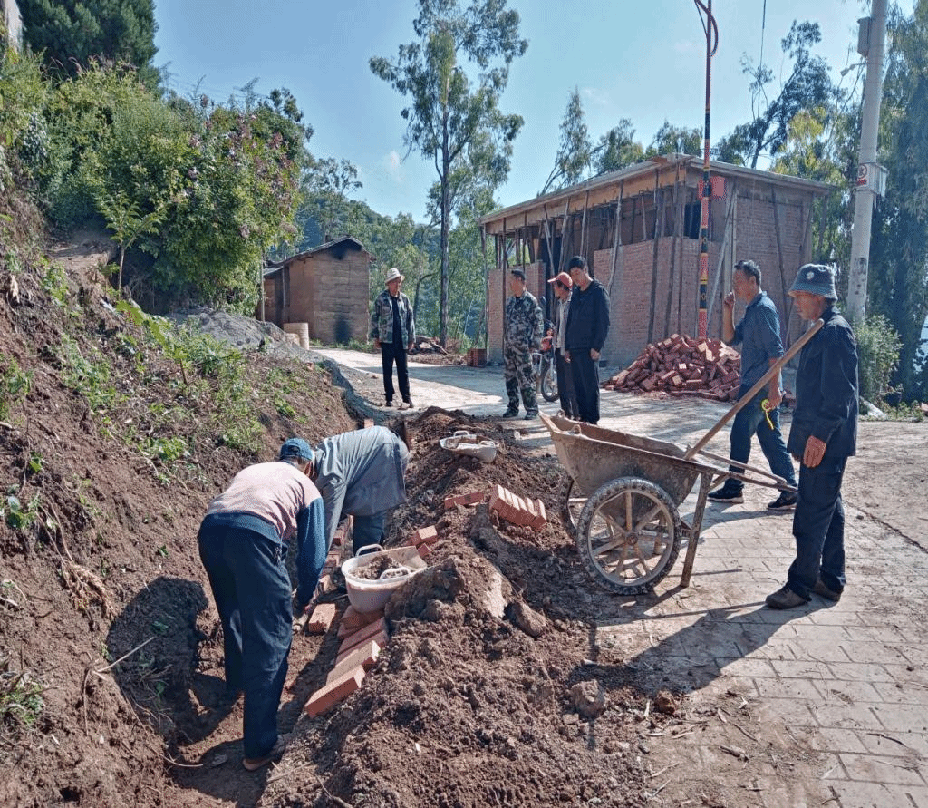 此次小井村委会人居环境整治将大梁子村民小组作为首个打造的村民小组,工程采取“外包、自筹及投工投劳”的模式,即整体设计、政策宣传墙体广告、统筹施工等由昆明风生水起广告公司来完成,基础设施、投工投劳由村委会和村民小组共同完成。整个人居环境提升整治工程在镇党委政府和小井村党总支带领下,村干部、驻村工作队员、村民组长、党员群众统筹好日常工作及烟叶收购工作,按照施工方用工需求,积极参加人居环境提升整治工程,为乡村振兴添砖加瓦!