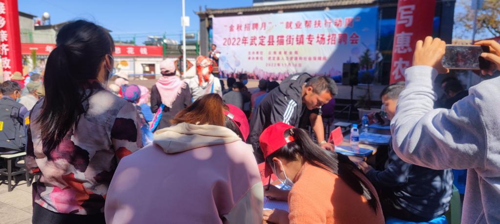 11月16日,云南省就业局联合武定县人力资源和社会保障局在武定县猫街镇举办“金秋招聘月”“就业帮扶行动周”招聘会,借助此次招聘活动契机,猫街镇积极配合主办单位和承办单位,在辖区十五个村委会大力宣传招聘活动及就业相关政策。通过采取进村入户走访、赶集日发放宣传单、短信信息推送、微信群信息推送及“送戏下乡”活动等宣传方式,把就业援助优惠等政策和招聘活动信息进行全面宣传,多渠道把把政策宣传到群众心里、把招聘活动信息传到群众耳里。