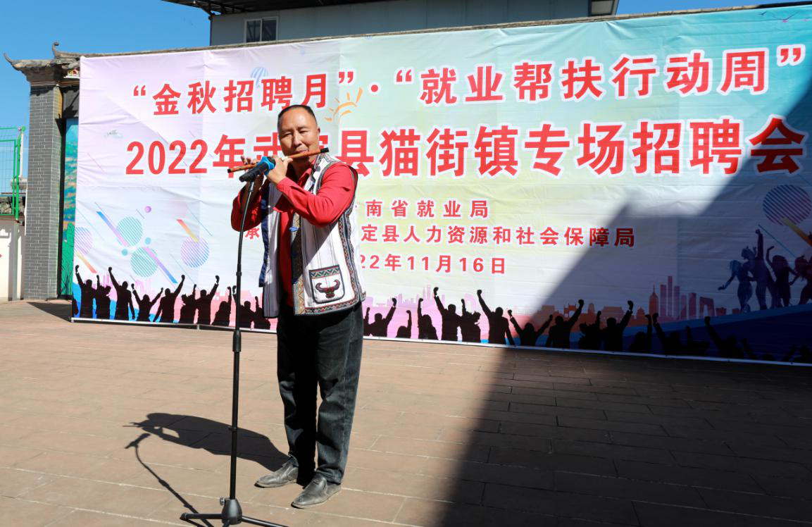 11月16日,云南省就业局联合武定县人力资源和社会保障局、猫街镇文化站在武定县猫街镇举办“金秋招聘月”“就业帮扶行动周”招聘会暨文化惠民演出。