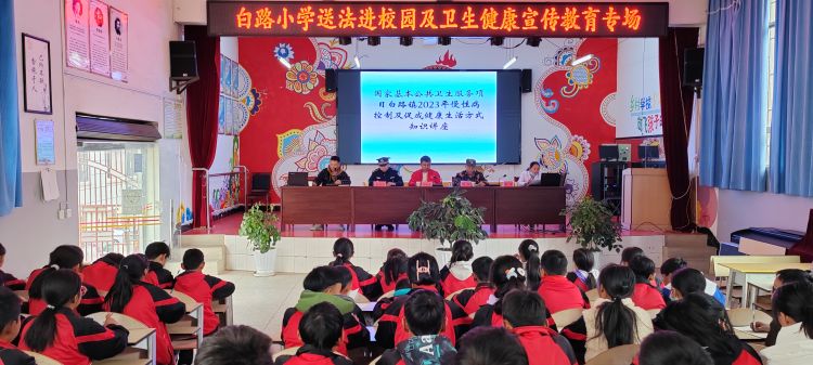 首先白路镇卫生院的李苹医生为我们带来了“白路镇2023年慢性病控制及促成健康生活方式知识讲座”。李医生精彩生动的讲解,受到了学生们的热烈欢迎。通过此次的讲座,让学生了解到慢性病的预防方法和健康生活方式的四大基石:合理膳食、适量运动、戒烟限酒、心里平衡,从而让学生改变不良的生活习惯,促进身体健康。