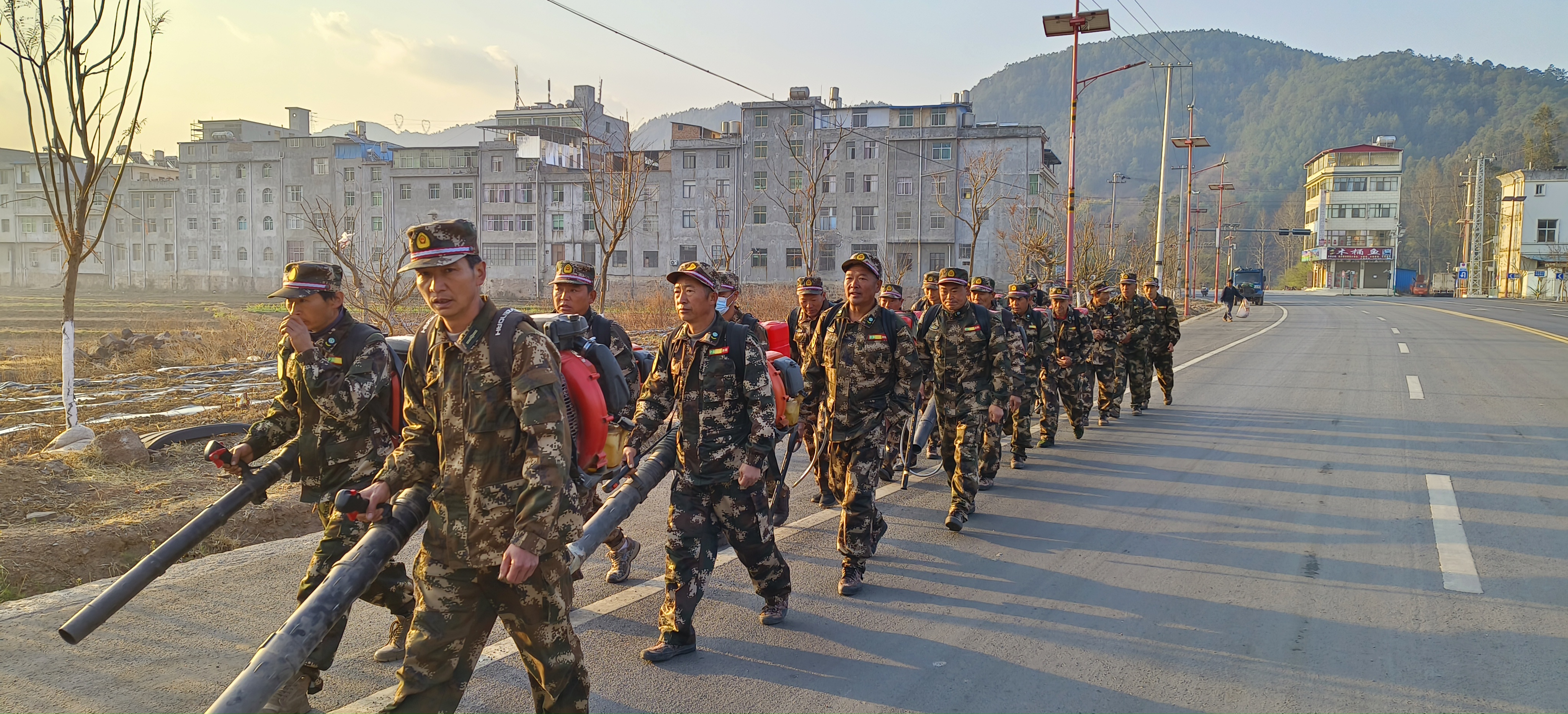 三是强化体能,夯实基础。为强化基础体能,提高队伍协调作战能力和凝聚力,确保队伍在关键时刻“拉得出,冲得上,打得赢”。扑火队全副武装进行了10公里拉练。