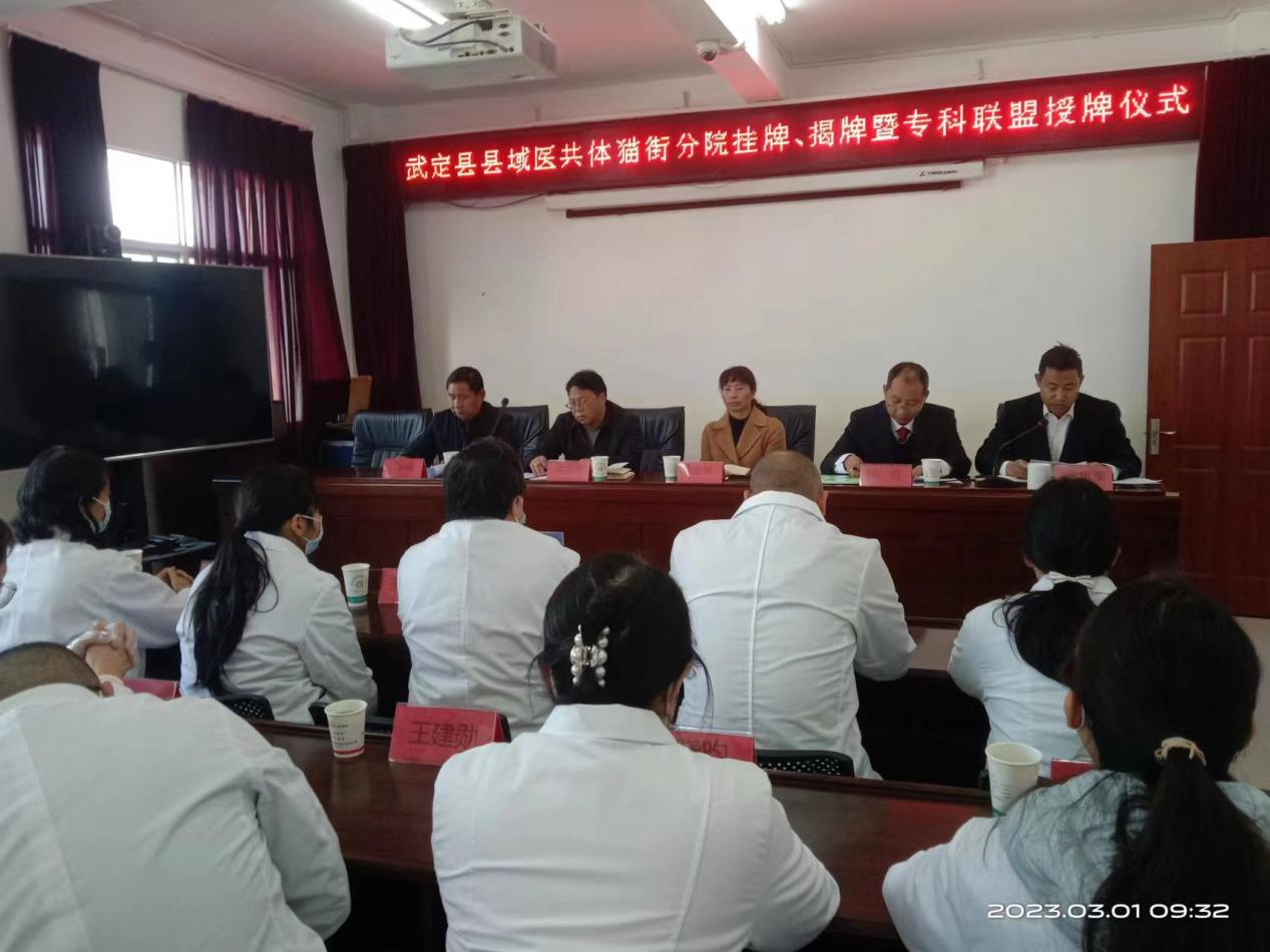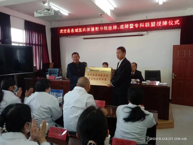 3月1日,县域医共体总医院副院长王天荣一行到猫街镇举行武定县县域医共体猫街分院挂牌、揭牌、专科联盟授牌仪式暨巡回义诊活动。