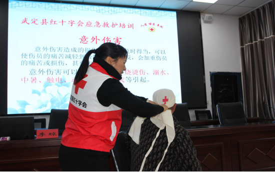 在培训过程中,红十字会的李琼老师首先讲明了应急救护的意义,再用生产生活中发生的具体实例、通俗易懂的言语讲解如何正确拨打120急救电话以及几种常见的急症的简单急救及意外伤害的现场救护的方法等一系列急救知识和技能。最后进行面对面的实际救护演练,向大家演示包扎、骨折固定等基本救护方法和技巧。