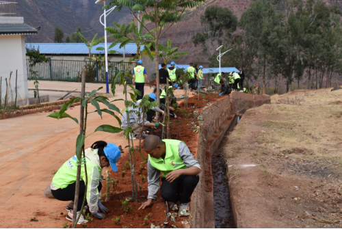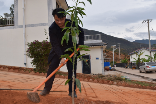 到达目的地后,大家个个态度积极、热情高涨,兴致勃勃地投入到植树活动中。在植树现场,大家有的扶苗,有的培土,各个环节衔接有序,配合默契,真正是劲往一处使、汗往一处流,充分发扬了团结、互助、友爱的精神。乡党委副书记、乡人民政府乡长杨成武身先士卒、奋勇当先、干劲十足,起到了表率作用。经过一上午的挥汗奋战,3500余株红花继木、木春菊、南天竹、花叶常青藤及100棵芒果树整齐地栽到了村庄旁,在二月的阳光中奏响绿色的希望,圆满完成了这次植树任务,为村庄增添了一片生机勃勃的绿色。