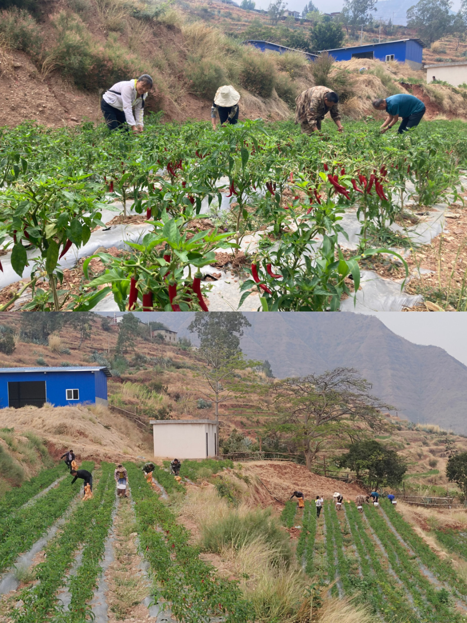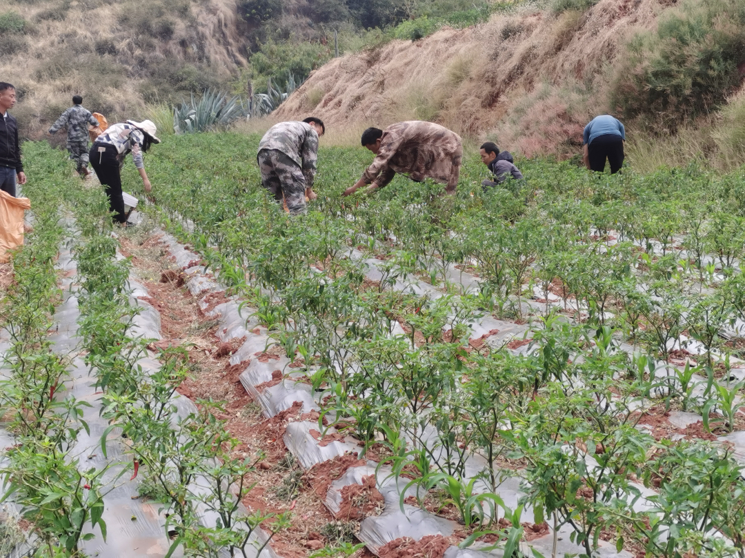 时下,正值反季辣椒采收时节,在东坡乡东坡村村集体辣椒种植基地里,一簇簇成熟的火红“美人椒”压弯了枝条,硕果累累的姿态让人欣喜。近日,为助力村集体产业发展,东坡村党总支组织县、乡、村三级工作队员和村里部分党员化身“辣椒采摘小分队”,穿梭在挂满红彤彤辣椒的基地采摘辣椒,田野间呈现一片繁忙欢快景象。