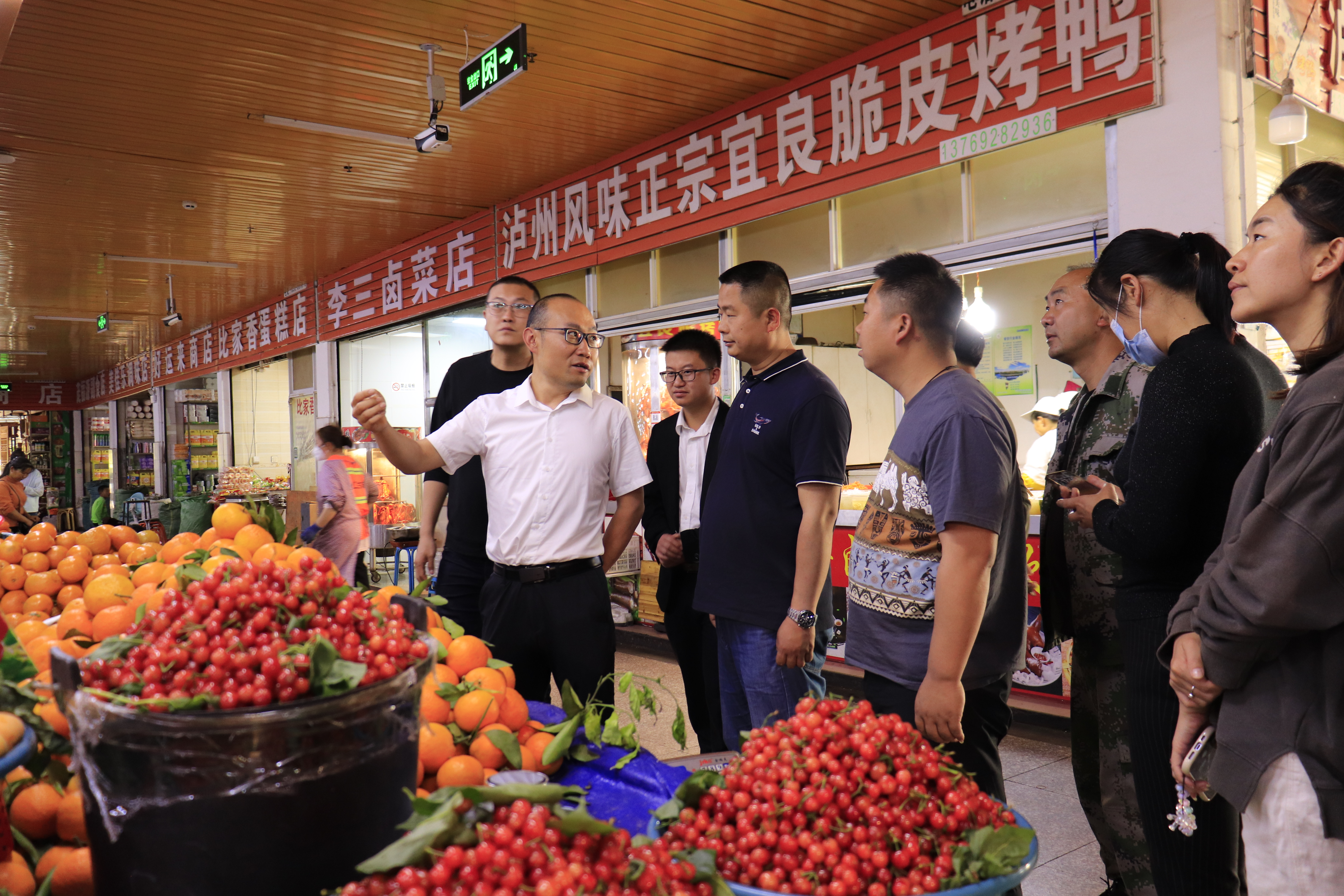 在永仁县智慧农贸市场,考察团参观学习了农贸市场的分类方法、规划布局、智慧管理。在数控中心市场负责人介绍了智慧市场云管理平台,通过一云多端,灵活便捷的软硬件工具组合,引导商户业务上线、结算上线。建设覆盖农产品从采购到销售环节的信息化管理方式,形成源头可去查、向可追、责任可究的食品安全大数据管理系统。