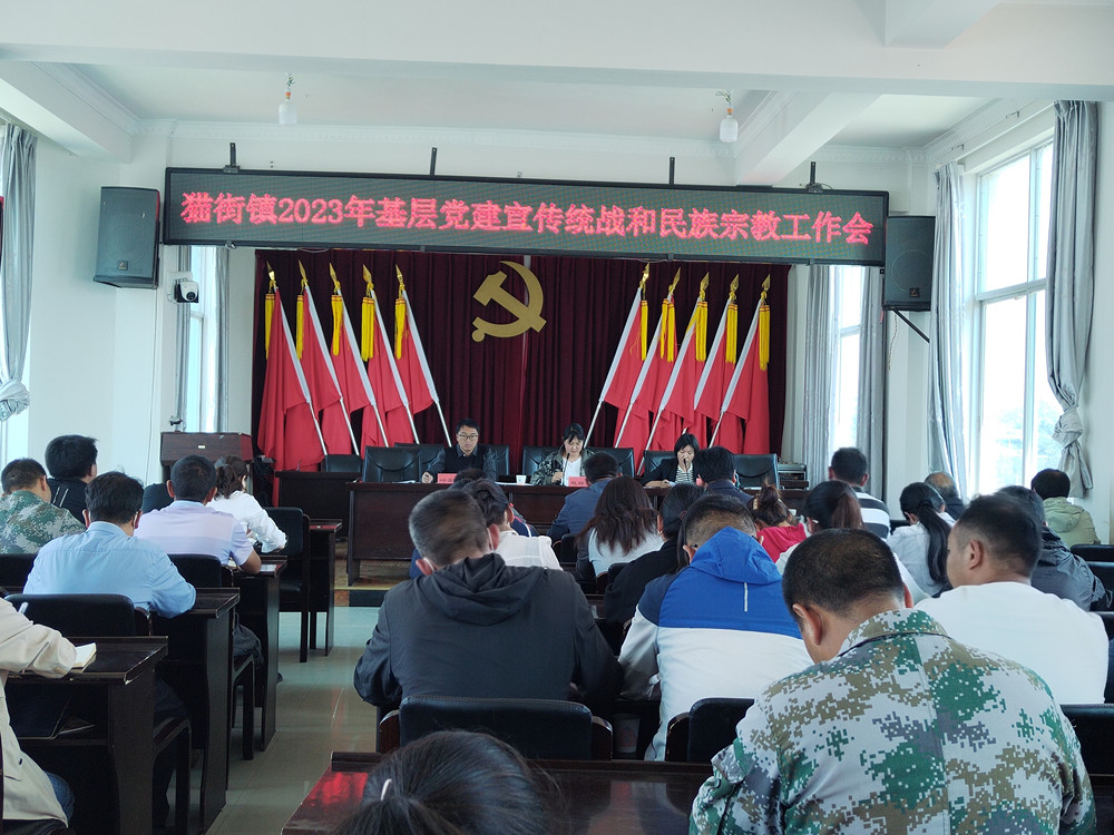 4月12日,猫街镇召开2023基层党建宣传统战和民族宗教工作会,总结2022年工作,安排部署今年工作,努力推动全镇基层党建、宣传和统战工作再上新台阶,为全镇高质量跨越式发展提供强大力量和坚实保障。参加会议的有全体党政班子成员、镇级机关党支部书记、各村党总支书记(主任)、副书记、镇级工作队长、政府院内全体干部职工共60余人。