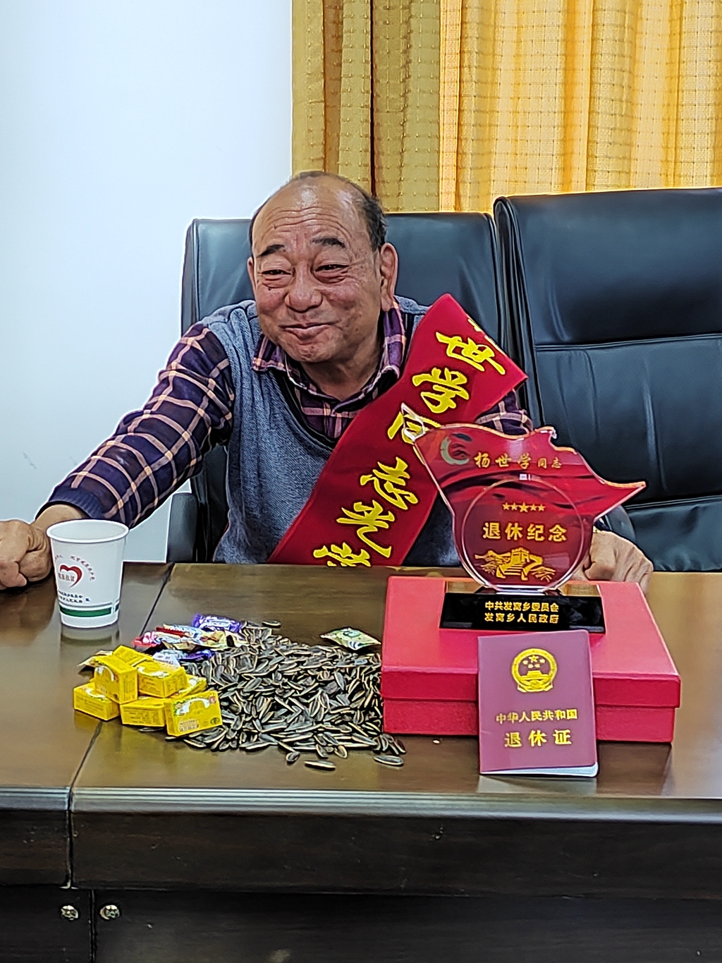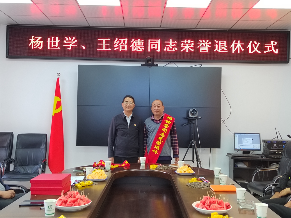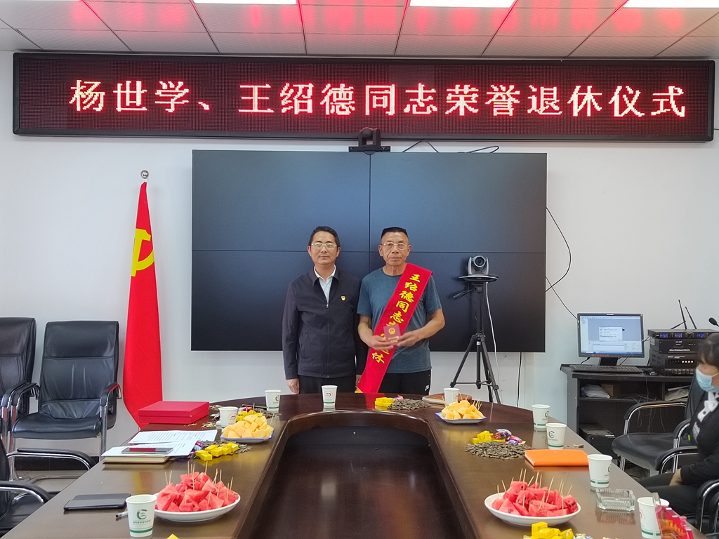 仪式上,发窝乡领导班子成员为王绍德、杨世学两位同志颁发了退休证书和“光荣退休”的纪念品,送上了乡党委、政府的关怀,致敬了两位同志在工作岗位上奋斗了数十年的使命担当。