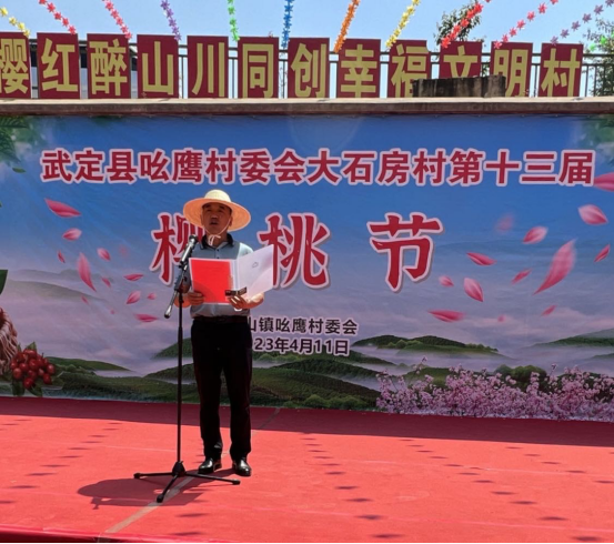 樱桃节开幕式在大石房村活动广场举行,县人大常委会主任普正祥出席仪式并宣布开幕,县委常委、副县长朱江为开幕式致辞,副县长杨韧及部分县级部门领导出席开幕式。