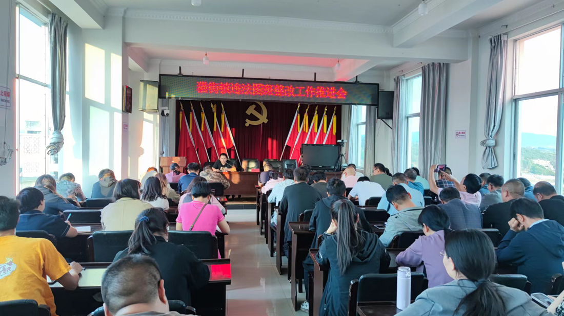 统一思想、强化组织抓整治。猫街镇多次召开卫片违法图斑整治工作部署会、推进会,成立由镇主要领导为总指挥,分管领导为组长,涉及的站所负责人及15个村委会党总支书记等相关人员为组员的工作小组。严格落实属地责任,要求各责任人切实提高政治站位,强化责任意识和底线思维,坚持“一斑一策,逐斑研究”,全面摸清每一宗图斑的相关信息,并结合实际情况,制定整治方案,明确责任分工,限订整改时间节点,灵活采取多种方法推进图斑整治工作,全力做好卫片图斑整改工作。
