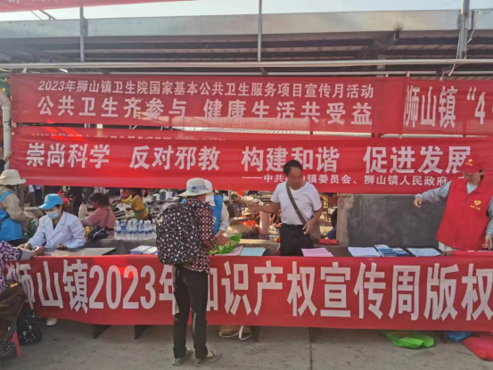 “平安狮山”志愿队利用赶集日人员流动性大且相对集中的特点,在西和集贸市场开展,通过现场讲解、宣传单发放等形式开展了反邪教警示教育。