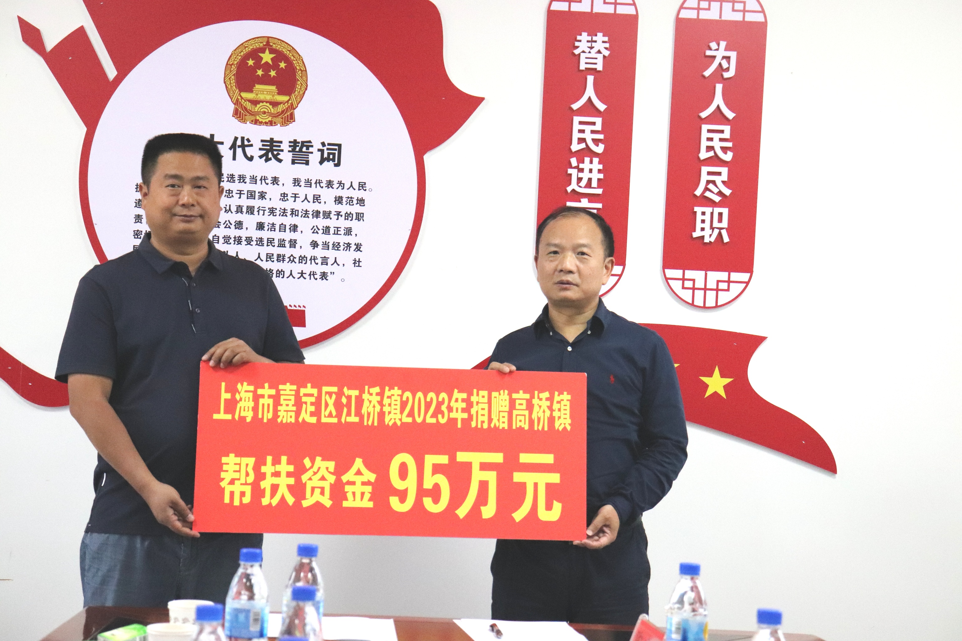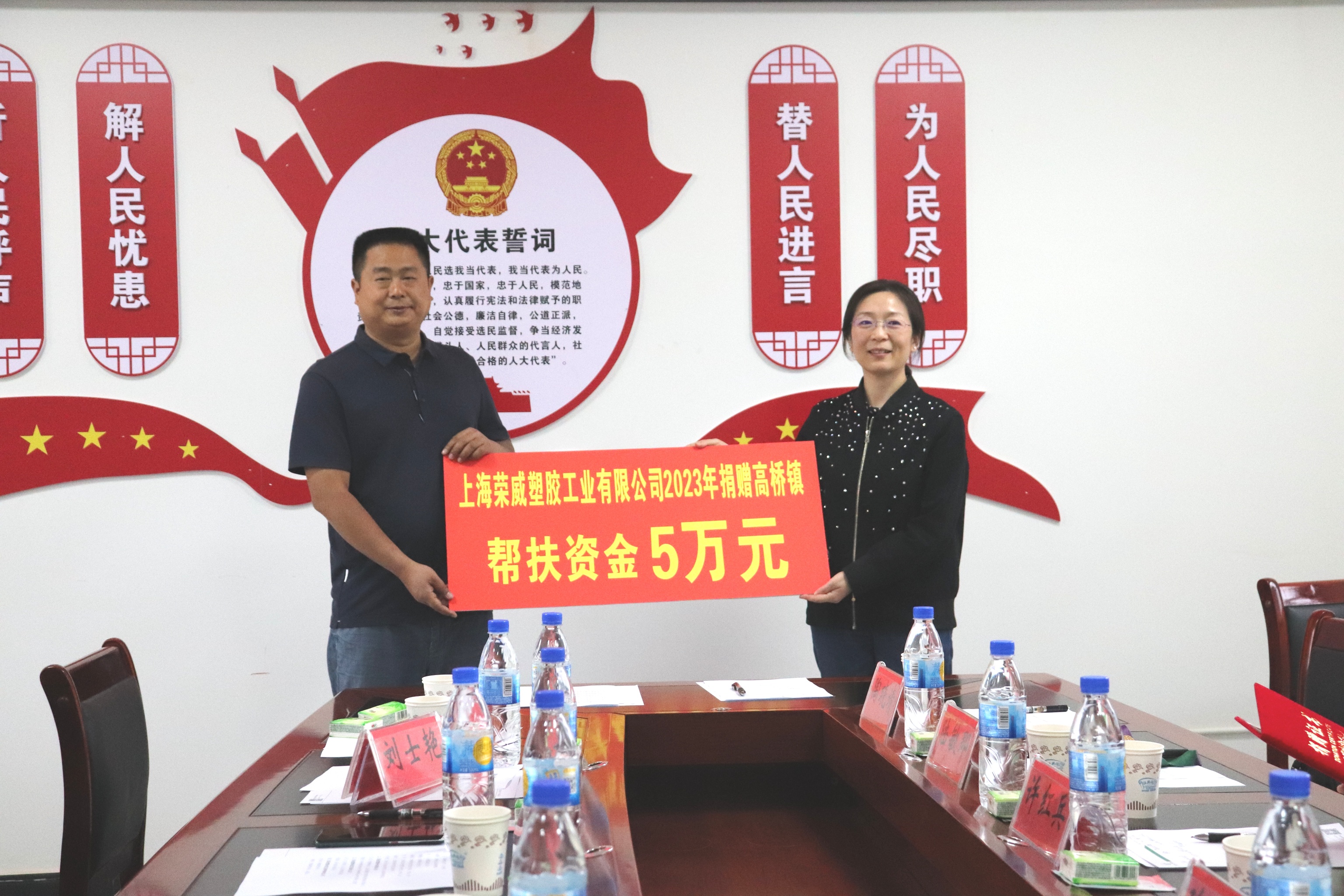 5月14日,上海市嘉定区江桥镇人大主席许红兵率队到高桥镇开展对口帮扶工作并召开对接座谈会暨捐赠仪式。县委常委、县人民政府副县长朱江、县乡村振兴局副局长张苏翼、镇主要领导参加座谈。