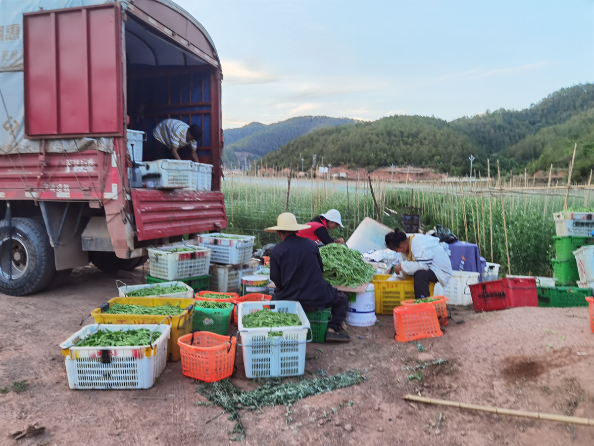 “今年云南普遍干旱,种植豌豆的农户较少,目前的豌豆荚价格较好,达到了15元一公斤”,从昆明市晋宁区过来收购豌豆荚的赵老板说。
