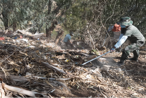 在环境治理现场,志愿者们顶着烈日,拿着扫把、钳子、铁铲、锄头等工具清扫白色垃圾、铲除小广告、清理“五堆十乱”。志愿者们充分发扬不怕苦、不怕累的精神,用钳子一点一点把白色垃圾拾出来,用手一点一点地把小广告撕下来,认真清理房前屋后和围墙边的杂草杂物、积存垃圾。