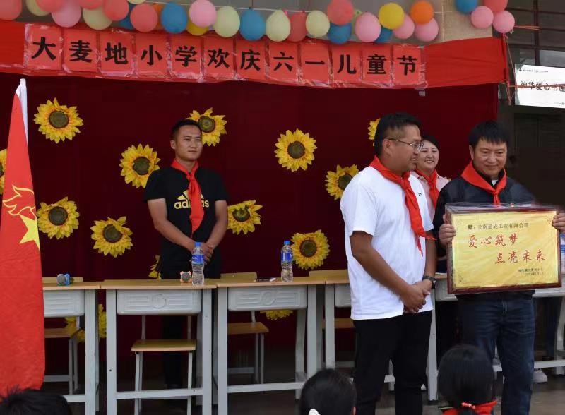 为感谢云南通成工贸有限公司一直以来对大麦地小学的关心和帮助,学校赠予了云南通成工贸有限公司董事长王朝虎“爱心筑梦 点亮未来”的感谢牌匾。