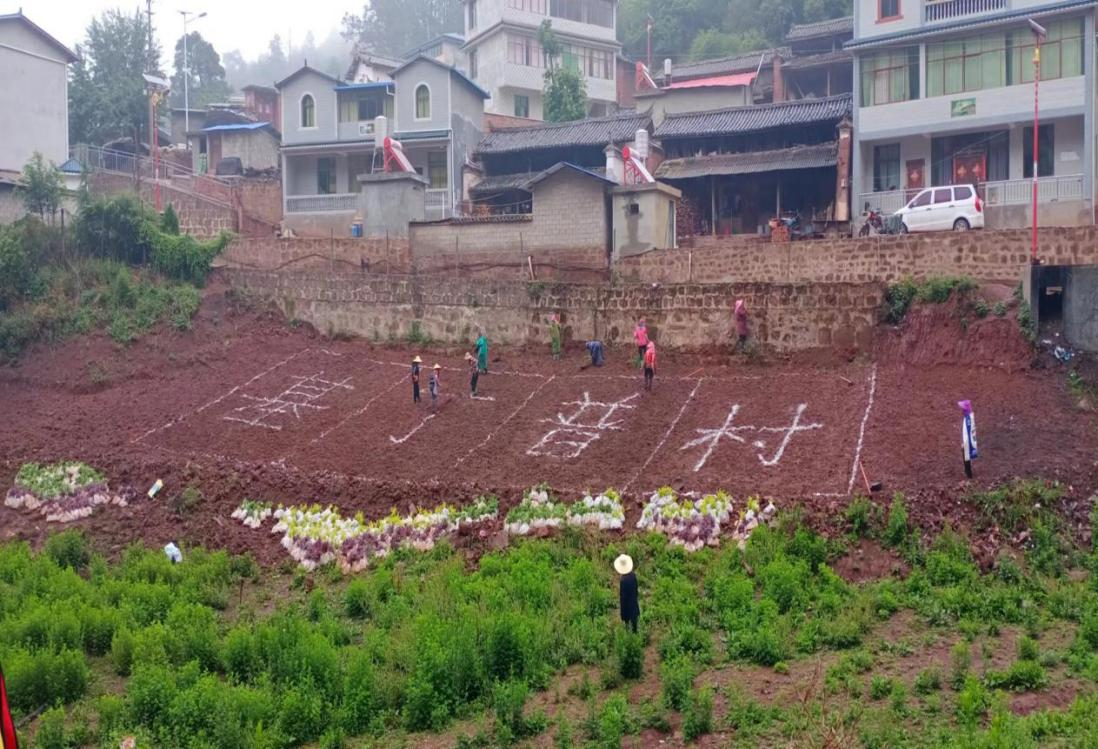 今天的主要任务是在基丁普村的进村道路两旁栽种60株樱花树和在斗牛场旁边的斜坡上运用色彩鲜明的园艺花木栽种出“基丁普村”的村名。全体成员拉线的拉线、挖坑的挖坑、移树的移树、抬土的抬土、栽花的栽花、盖土的盖土、浇水的浇水,大家干得热火朝天。天气寒冷,天空下起了濛濛细雨,但大家并没有停止手里的工作,脚上的稀泥越粘越厚,他们有的满头大汗,有的衣服湿透,有的手上磨起了水泡也没有半点怨言,越干越有劲,直到把所有的花和树都栽种完毕。