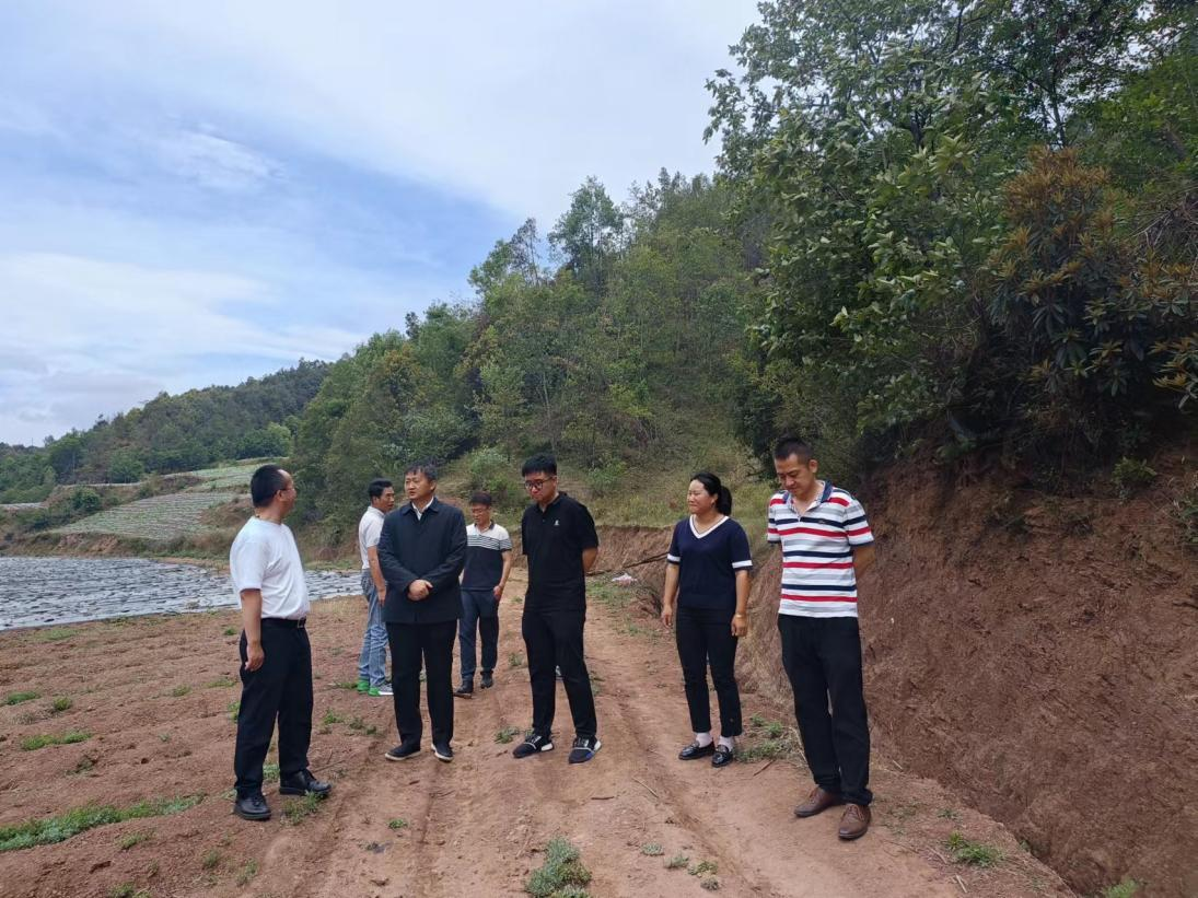 在大雪坡党员实训基地调研时,企业负责人详细了解了基地的土地资源利用、水源供给、基础设施配套建设情况。