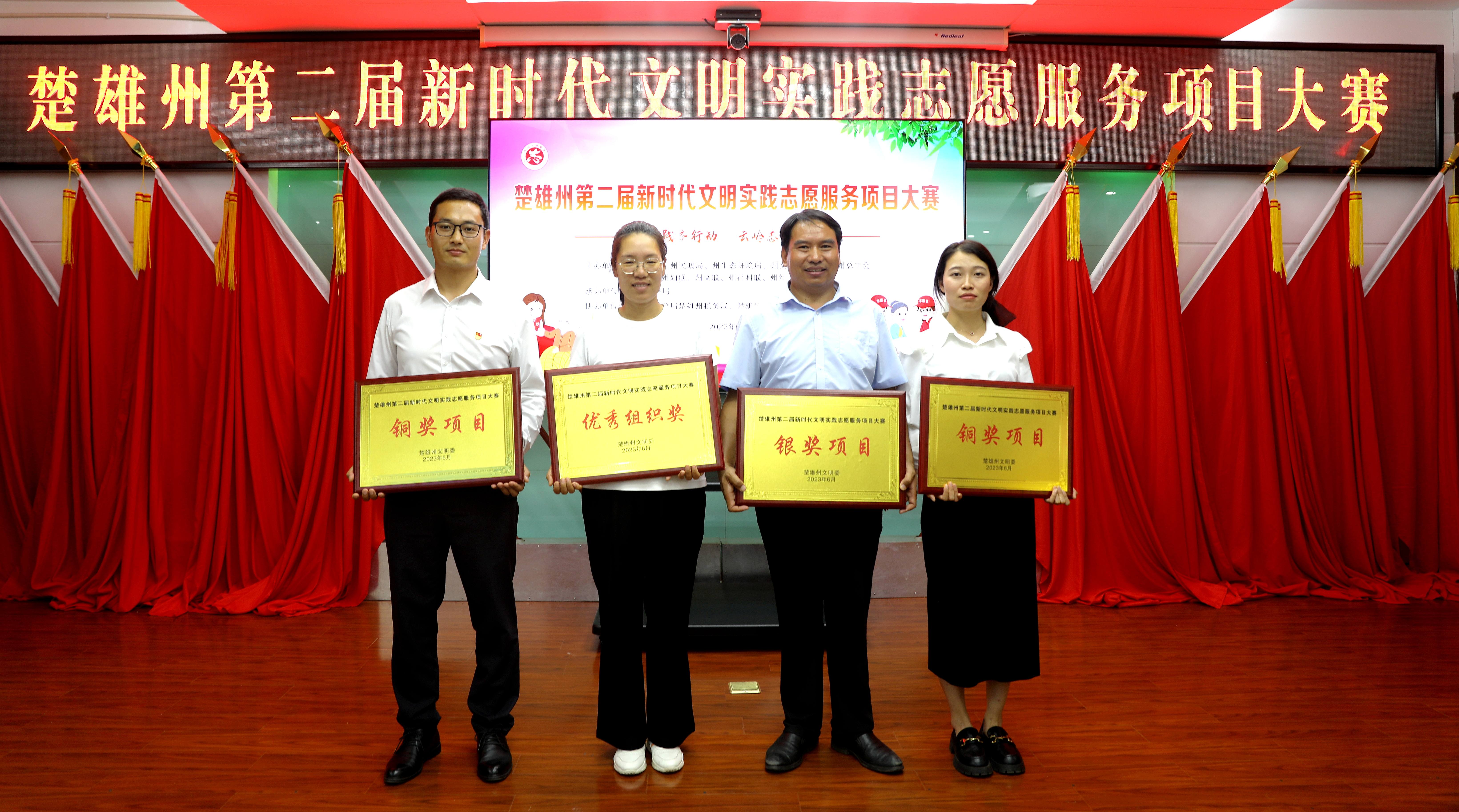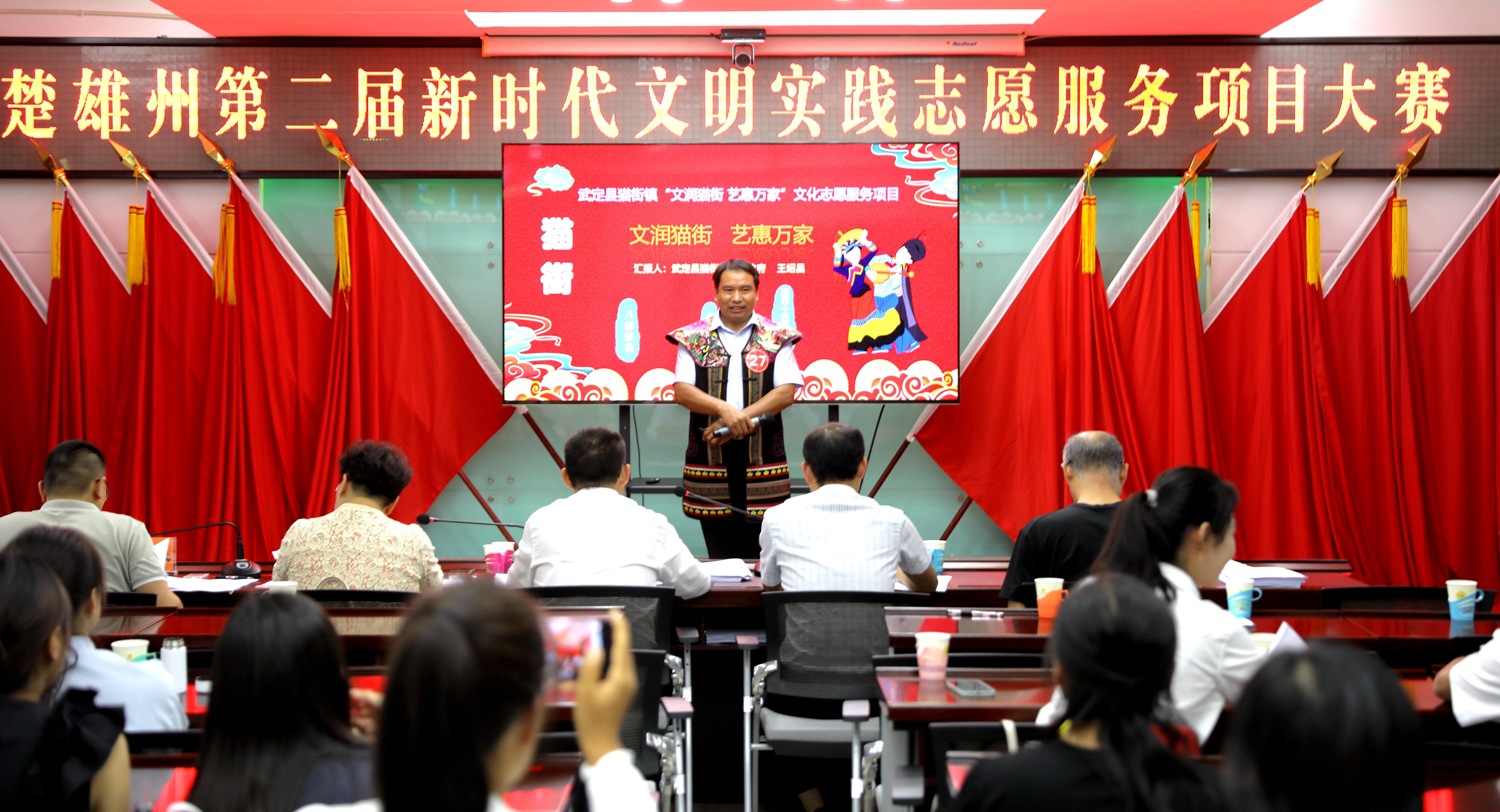6月30日,由州委宣传部、州文明办、州生态环境局、州民政局、州文化和旅游局、州总工会、州团委、州妇联、州文联、州社科联、州红十字会共同主办的楚雄州第二届新时代文明实践志愿服务项目大赛中,由猫街镇文化站选送的“文润猫街 艺惠万家”文化志愿服务项目在楚雄州第二届新时代文明实践志愿服务项目大赛中,经过县级初评,州级复评,成功入围总决赛,经过路演答辩、专家评审,喜获银奖。