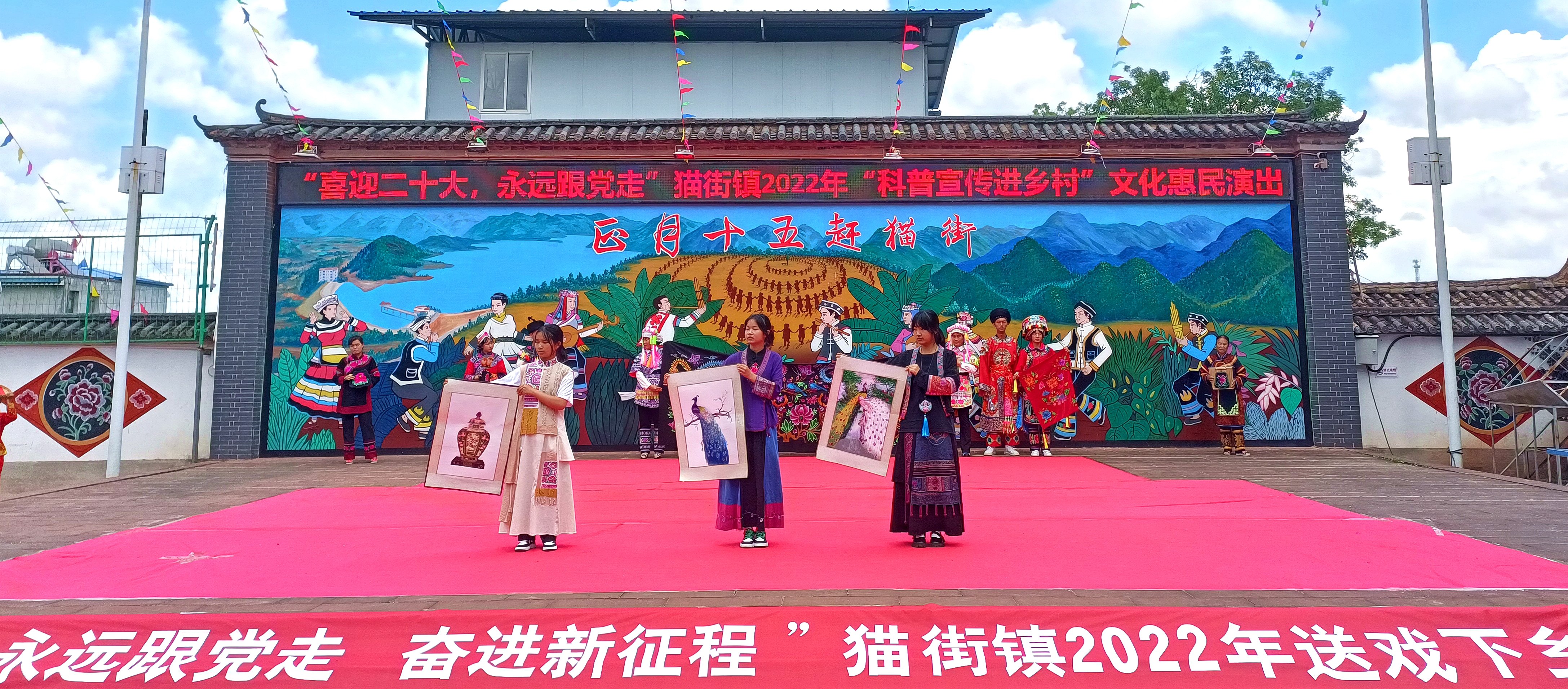 猫街镇立足镇级13支文艺队,围绕学习宣传贯彻落实党的二十大精神,采用群众喜闻乐见的形式,精心编排文艺节目,到农村开展文化巡演活动,惠民送戏下乡活动,将优秀的文艺作品、文艺产品覆盖到全镇15个村委会,将党的政策用文艺节目的形式宣传到基层,既开展了活动也满足了广大村民精神文艺的需求,激发他们参与新农村建设,参与精神文明建设的热情。极大地促进农村文化建设,鼓舞群众干劲,改善农村社会风气,密切了党群、干群关系。