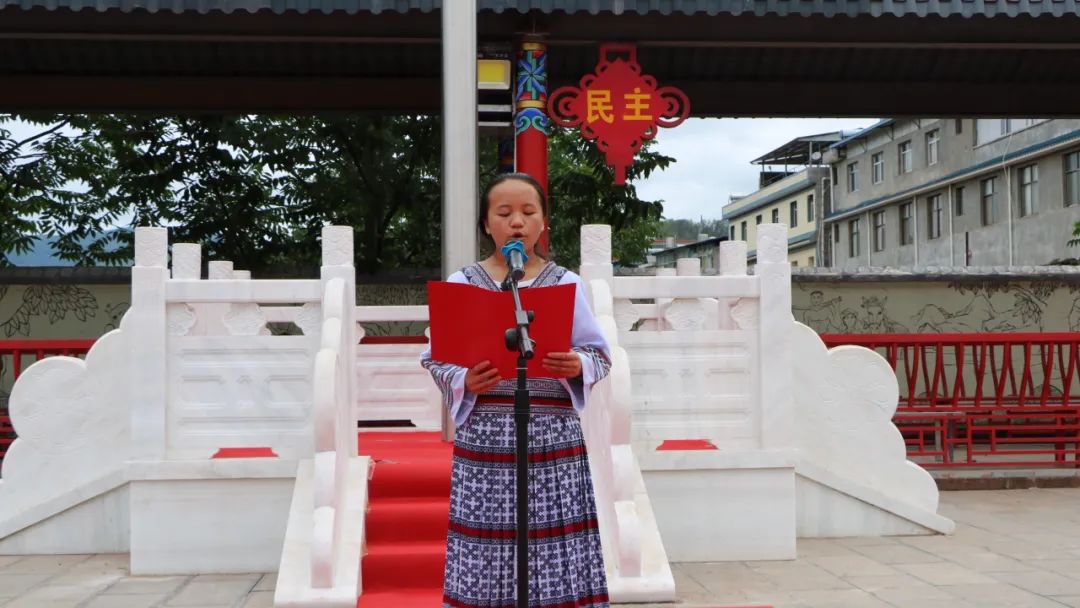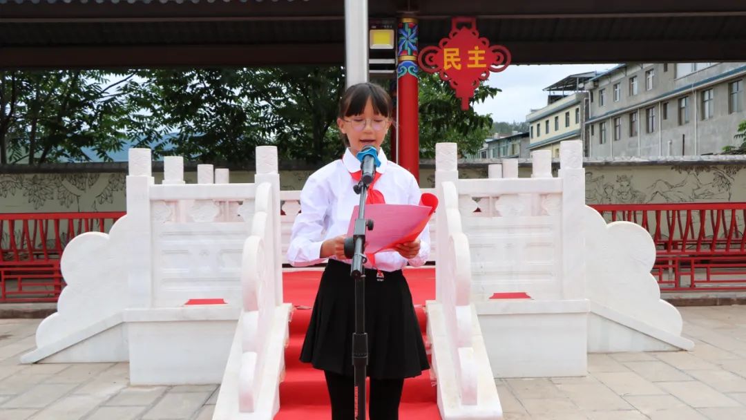 在国旗下,发窝小学六年级学生代歆言作国旗下的演讲,她号召同学们,作为祖国的未来、民族的希望,一定要好好学习、天天向上,放飞理想、奋发图强,练好本领、长大为祖国争光。