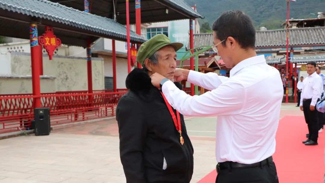 随后,在大家的注视下,乡党委书记李华为老党员代表钟文兴颁发佩戴“光荣在党50年”纪念章,现场掌声阵阵,气氛热烈感人。