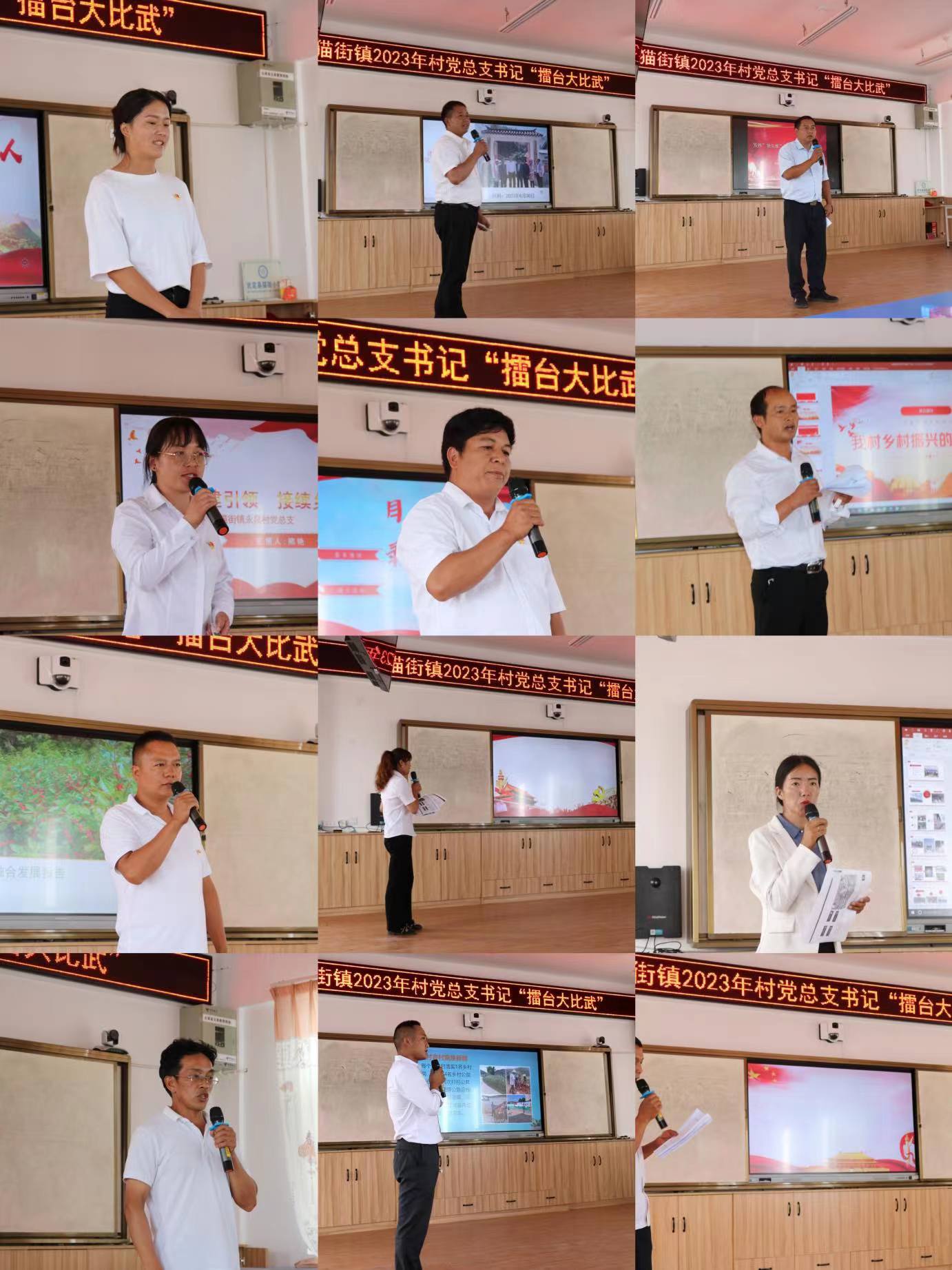 6月30日,一场特殊的“擂台比武”在猫街镇小学举行。猫街镇15个村党总支书记轮番上阵,通过PPT演示解说的形式,围绕基层党建工作、乡村振兴、产业发展、人居环境整治提升、村集体经济发展、乡风文明等方面,晒成绩、谈经验、谋发展。