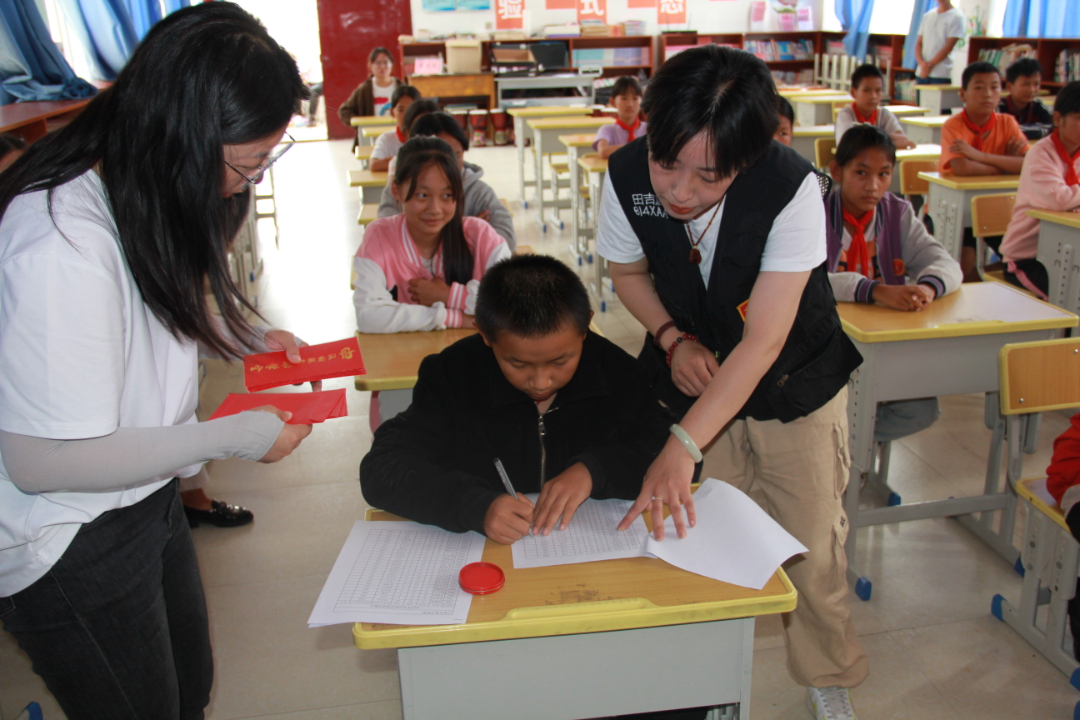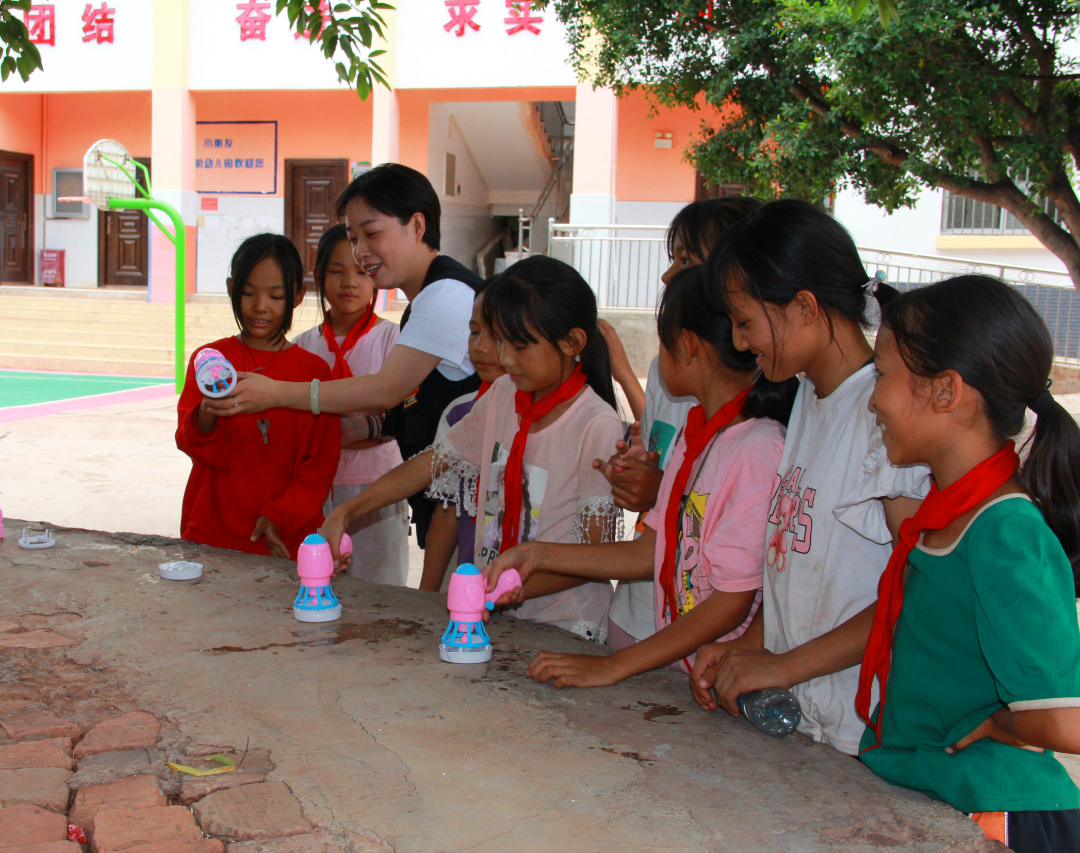 此外,徐州汉姆联队爱心人士还与受资助学生进行了一对一的谈心,从学习上、心理上对孩子们进行帮助和鼓励。在游戏环节,学生们与爱心团队的老师们围坐在大树下,吹着七彩泡泡,唱着欢乐的青春之歌,畅谈着理想与未来,孩子们纯真的脸上都洋溢着幸福的笑容。当问到拿到助学金想干什么时,孩子们说“想买一个建筑模型”、“想买一本作文辅导书”,朴素而又真诚的回答充斥着孩子们对未来生活的美好愿景,在一问一答、一闹一笑中增进了爱心人士与孩子们的感情。