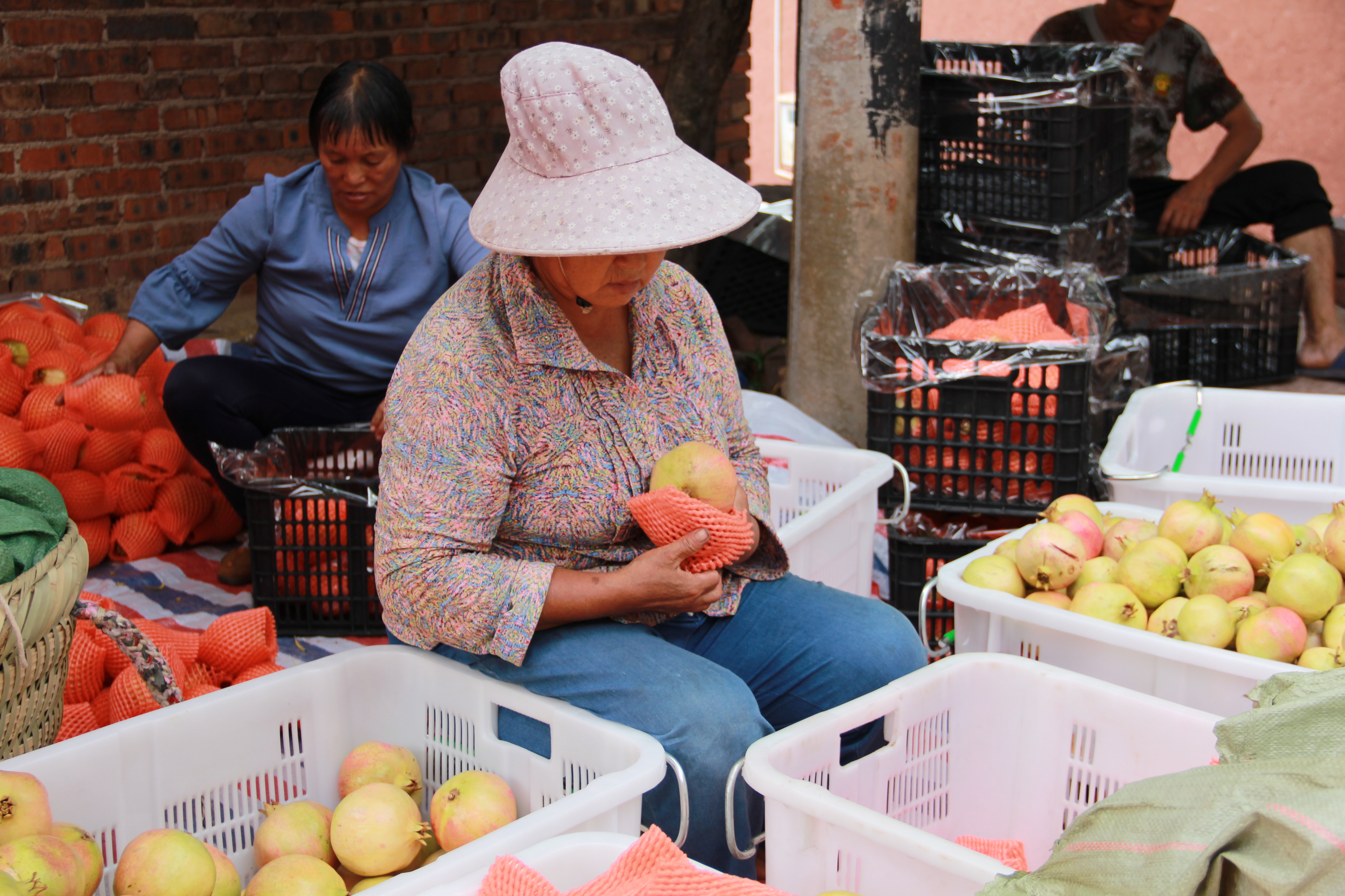 和罗春华一样,在东坡村委会普照田村、安茂里村、上村田村,通过种植软籽石榴致富的农户有30多户,种植面积达300多亩。经过多年探索,东坡村委会已经形成了“党支部+种植大户+基地+农户”的产业化经营模式,从种植技术培训、种苗引进、土地协调、生产管理到产品销售等方面为种植户提供全方位的服务,群众对发展软籽石榴种植产业信心十足。东坡村委会村务监督委员会主任晏忠平介绍,过去这三个村贫困户占比达百分之七十以上,人均纯收入远远低于全乡水平,是东坡乡典型的贫困村。2015年以来,通过引进软籽石榴种植,以土地流转、基地务工、产品销售、打开市场等方式,让贫困群众从传统种养殖业中解放出来,实现了多元化增收致富。今年,全村的石榴总产量有望突破200吨,总产值大约在200多万元,将实现户均增收1万元以上。