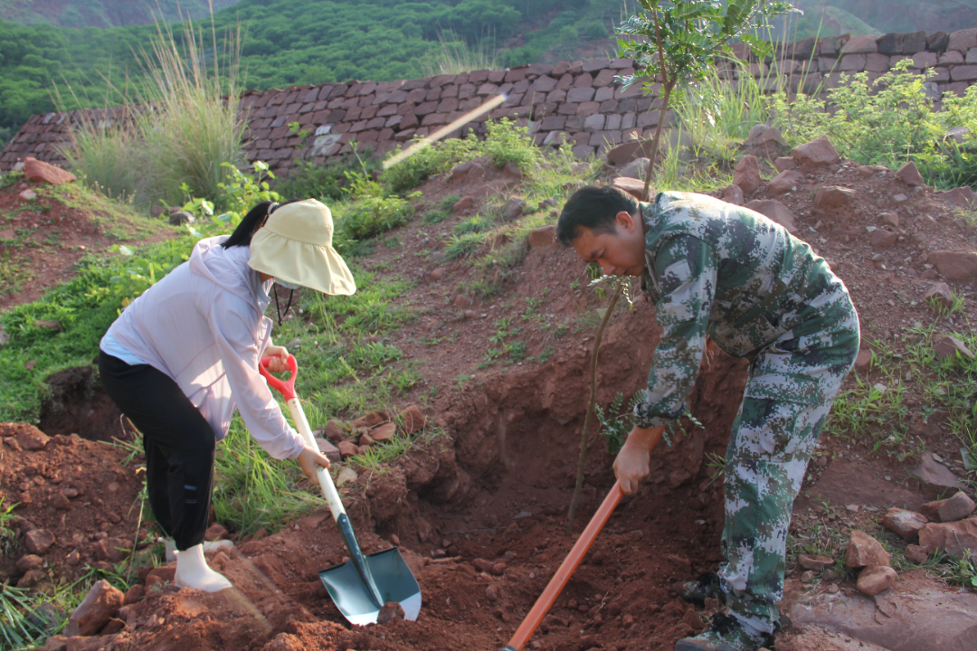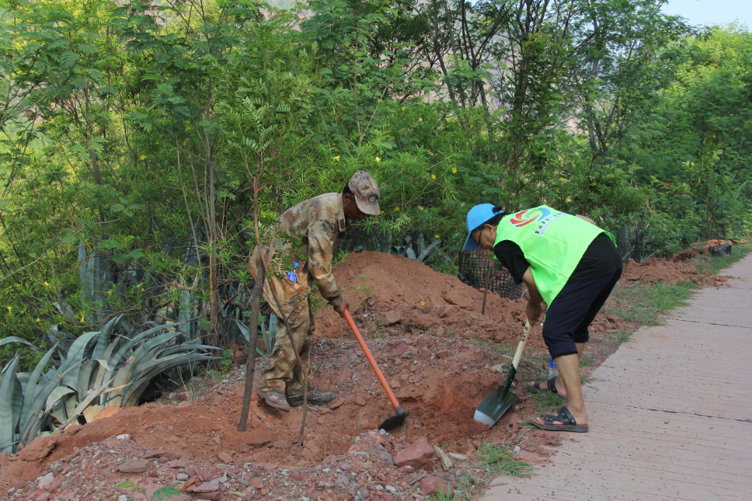 活动中,志愿者们身穿绿马甲,一大早就来到植树地点,经过简短的植树要领培训后,大家纷纷拿起铁锹,铲土扶苗,分工协作,默契配合地完成植树的每一道工序。整个植树现场一派热火朝天的劳动景象,大家干劲十足,用双手播洒绿色、绿化美化家乡。经过大家的辛勤劳动,一棵棵树苗稳稳地扎根在土壤中,迎风挺立,展现出勃勃生机。