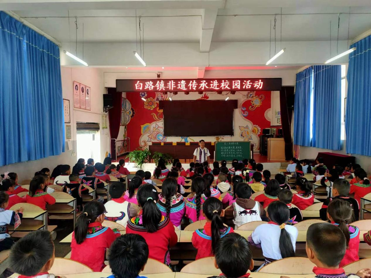 推进非物质文化遗产文化传承传播。为弘扬和发展优秀非遗文化,白路镇每年定期及不定期举办“非遗进校园”活动,通过非遗传承人进校园和进村组的现场教学,充分吸引了青少年和群众的注意力、关注度,让广大群众真正了解非遗、认识非遗,为非遗的传承与发展,为魅力楚雄永保民族文化活力注入源源不断的新鲜血液。