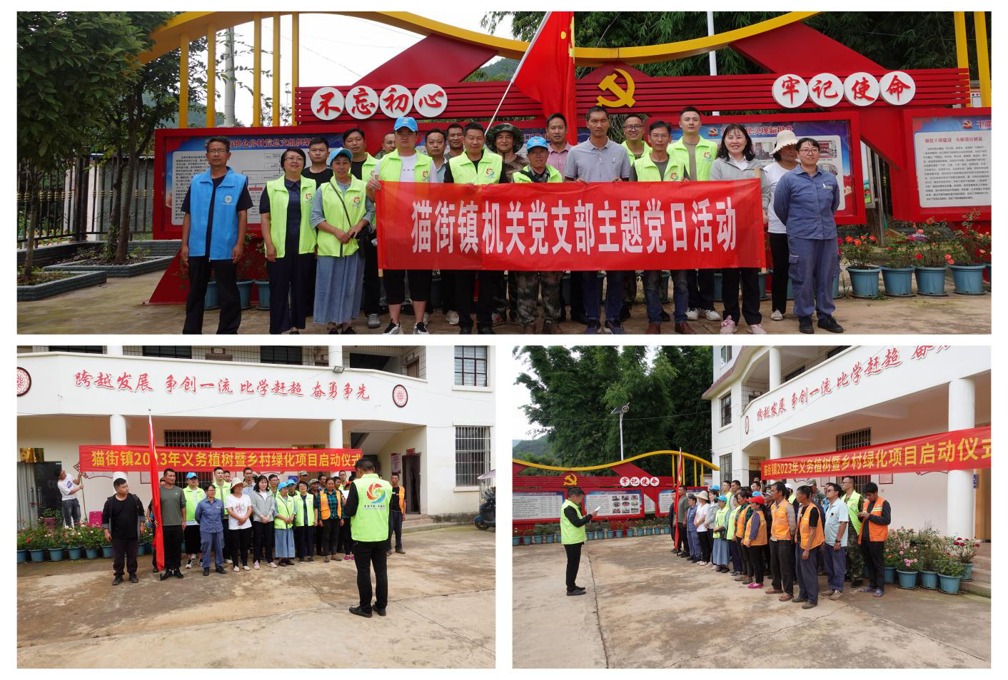 猫街镇近期降水充沛,易于树木成活,镇党委、镇政府抓住有利时机,组织全镇干部职工和仓房、麦地冲等村委会村干部、党员、护林员、公岗600余人开展义务植树暨绿化示范建设活动,以重点区域的干净、整洁、美观,示范带动全镇农村人居环境整体改善,着力打造“四季有绿,四季开花”的宜居环境。
