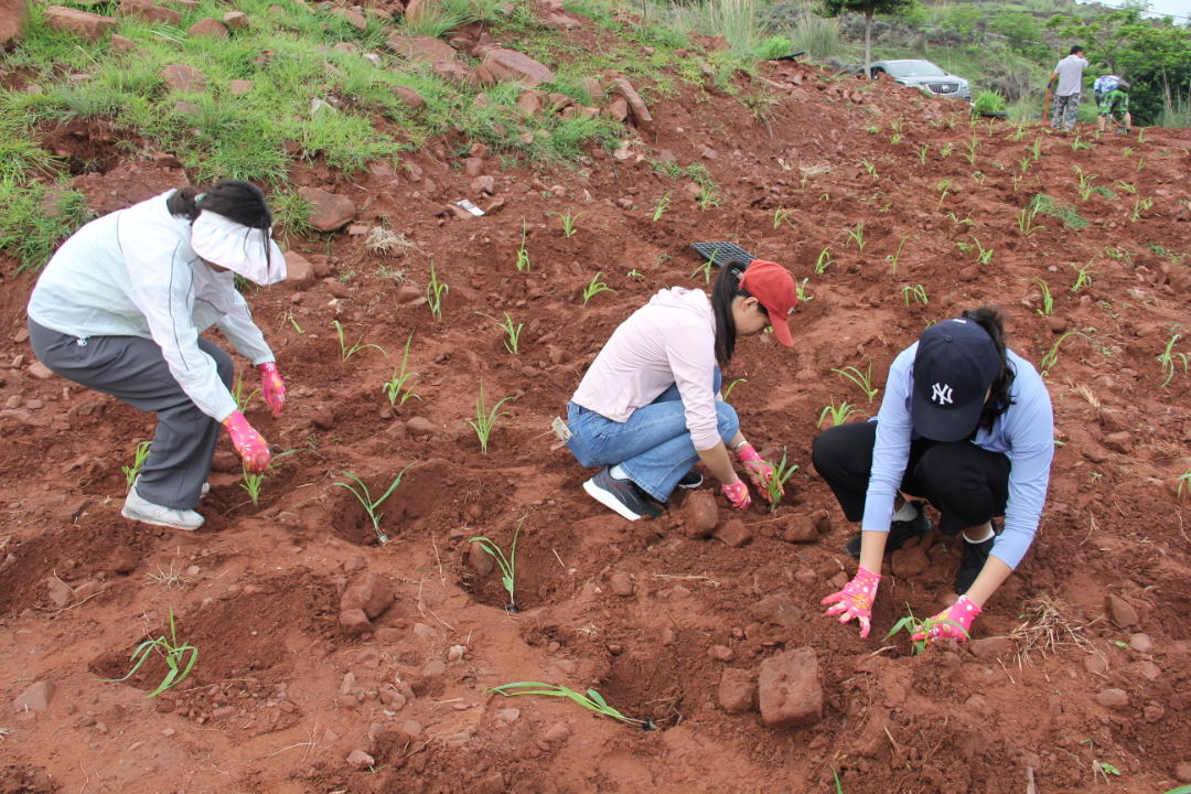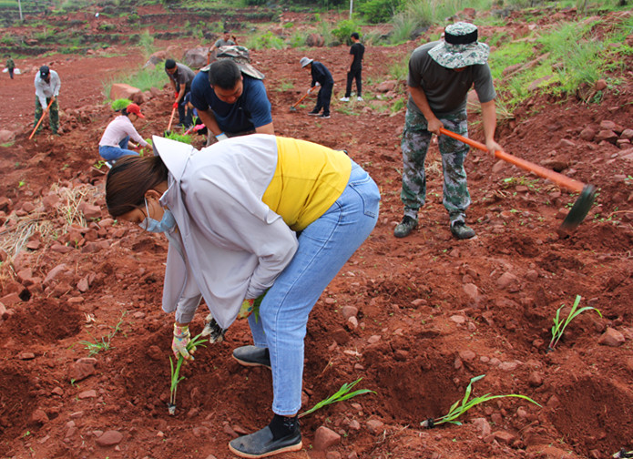 本次活动地点在以赤叨村委会以都莫村,耕种面积为60.8亩。活动中,全乡干部职工、村委会党员、驻村工作队员、公益性岗位人员齐上阵,纷纷撸起袖子、卷起裤腿,有的运苗、有的分苗、有的栽苗,干劲十足,经过一上午的努力,在一片欢声笑语中,一排排绿油油的玉米苗便在田间地头遍布开来,与地头的党旗相映成辉。