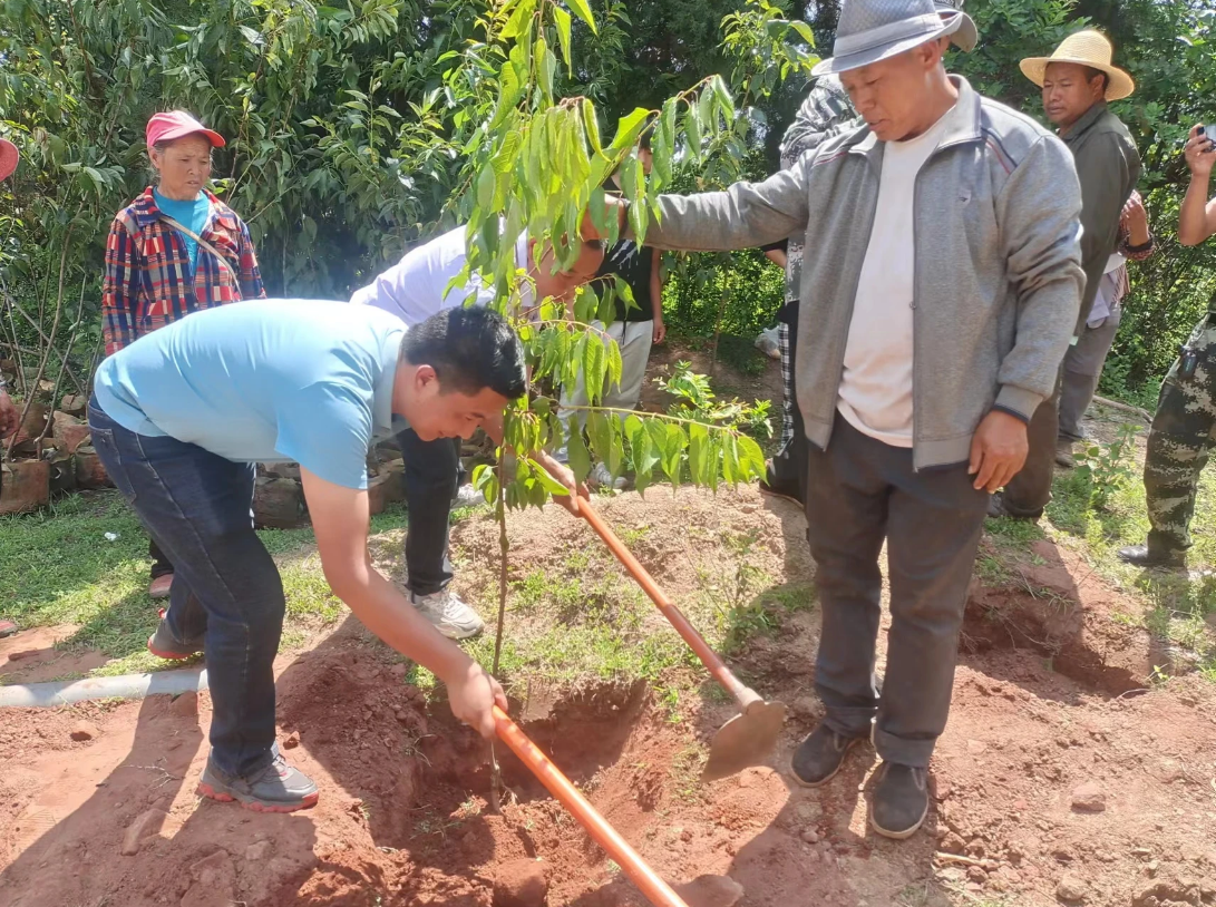 植树现场,村民群众都纷纷拿起铁铲、锄头、水桶等工具,分工协作,团结一致,分发树苗、挖坑测量、栽树扶直、回填浇水等环节有条不紊地进行,整个植树活动现场呈现一片热火朝天的劳动景象,充分发扬了团结协作互助友爱的精神。在大家的共同努力下,本次植树活动共栽樱花 800 株,樟木 700 株,共计 1500 株,折合面积 30 亩。栽植范围:小滔谷—吝车上村—吝车小村和滔谷梁子—滔谷村—上乍车—则湾的公路沿线。