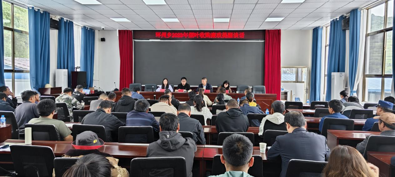 近日,我乡烤烟收购工作进入关键时期,为切实维护好烤烟收购秩序,防止烟贩子跨地域非法倒买倒卖烟叶,抓好2023年烟叶收购工作,确保圆满完成年度目标任务,8月29日环州乡召开环州乡2023年叶烟收购廉政提醒谈话会,全体党政班子成员、各卡点堵卡人员、各村党总支书记、烟叶站全体人员共100余人参加会议。