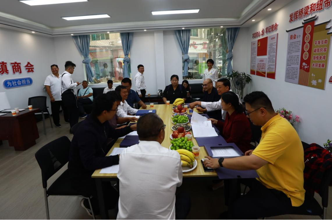 猫街镇人民政府镇长杨海,党委副书记、商会党支部书记董纬,猫街镇商会全体执委热情接待了阮鸿献一行,并在商会会议室进行了座谈交流。