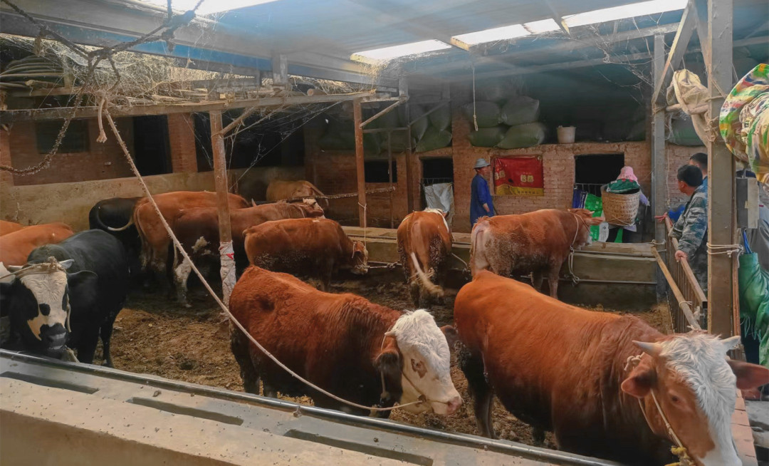 每天早晨,李建强都会准时出现在牛圈里,为养殖的20多头牛添加草料、打扫圈舍,这些牛是李建强的“宝贝疙瘩”,是他摘掉“穷帽子”的秘诀。据了解得知,七八年前李建强还是建档立卡贫困户,是全村典型的贫困家庭,养牛之前,他一家五口人全靠种田地为生,土地虽多,但种植结构单一,产出微薄。在两个娃娃上学之后,家里的经济越发紧张和困难,为了一家人的生计,李建强重拾信心,一边在附近找零工做补贴家用,一边在寻找其他赚钱的路径。一次偶然机会,李建强参加了政府组织的贫困劳动力养殖技术培训接触到了养牛知识,想到村里大部分群众都种玉米和小麦,有大量剩余秸秆可以用来喂牛,而且还不要钱,这让他发现了商机。经过多方了解,发现周边肉牛的市场需求量大,养牛产业前景十分广阔,在仔细分析、综合研判的情况下,决定在家发展养牛产业。