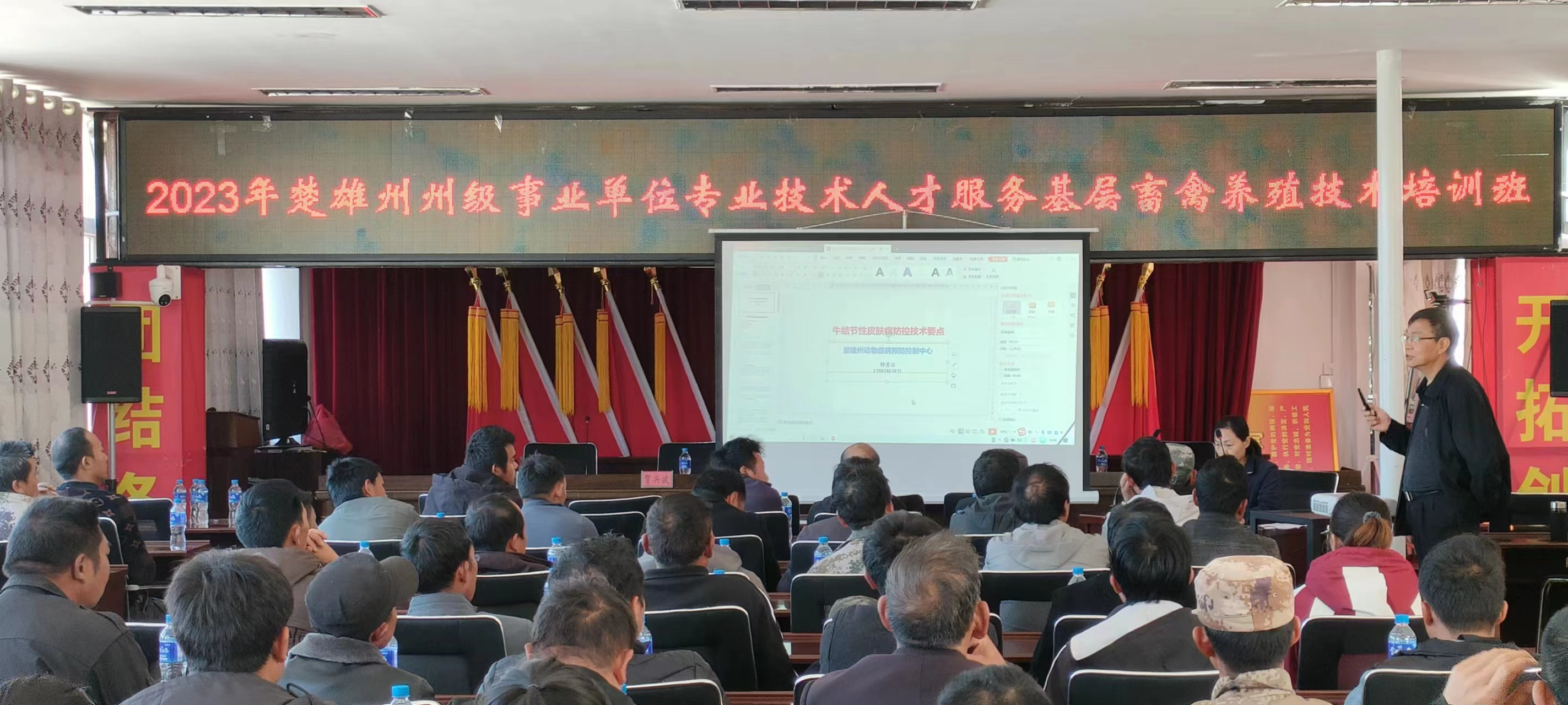 白路镇地处高海拔山区,平均气温较低,独特的自然环境对发展养殖业有所受限,需要不断提升养殖技术。为进一步提升科技养殖技能,加快养殖产业高质量发展,带动养殖产业蓬勃兴旺,促进农村经济繁荣发展,白路镇于11月3日联合楚雄州农业农村局举办了一场肉牛养殖技术培训班。培训过程中,先后由4位授课老师从不同方面进行授课,主要围绕布鲁氏菌病防控技术要点、牛结节性皮肤病防控技术要点、肉牛品种选择、冻精改良技术、农业安全领域防控方面开展。丰富的培训内容,让课堂上的学员热情高涨。“养殖技术的学习,好比挑一块好的雪花牛肉。学来的技术知识要搭配好实际操作。就像雪花牛肉,需要肥瘦相间,两者缺一不可,相辅相成才能达到好的价值。想要提升养殖技术要不断的去学习,去实践,去累积,才能让我们的养殖产业持续高质量的发展。”楚雄州农业农村局动物疫病预防控制中心主任杨培昌在课堂上对学员们说道。培训结束后,学习热潮依旧持续。课后,学员们围在一起讨论着自家肉牛养殖的情况、遇到的困难问题和培训学习到的新知识。“去年咱们镇成立了肉牛冻精改良站,一直是由我来开展这个事情,经过一年的试验,我发现我的这个冻精改良技术一直不得行,成功率不老实高。今天上课给我解决了疑问,可能是我在操作的过程中操作太慢,我回去要按照老师说的再试验一下。”岔河村委会德胜田村张铁先说道。