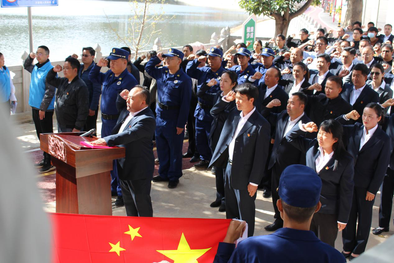 “我宣誓:忠于中华人民共和国宪法,维护宪法权威,履行法定职责……”,2023年12月4日,在第十个国家宪法日到来之际,万德镇党委政府组织镇村干部在万德湖法治主题公园宪法宣誓广场上举行宪法宣誓仪式。