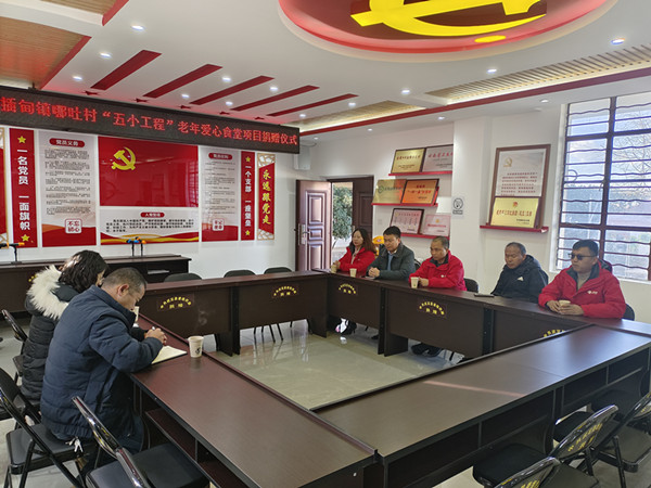 哪吐村认真落实县委县政府关于“五小”工程的工作要求,加快推动老年爱心食堂落地落实走长远。哪吐村村“两委”和驻村队员一方面积极学习先进经验,借助县农村养老“五小”业务培训平台,认真向县级部门、优秀乡镇请教,并前往环州乡调研学习“五小”工程经验做法;另一方面充分发挥主观能动性,按照“自己出一点、财政拿一点、村集体经济补一点、经营主体让一点”的要求,统筹村内资源,并积极对接中国联通武定县分公司和武定县筑达建筑公司村企结对帮扶,爱心捐助共1万元用于老年爱心食堂运营。目前,哪吐村2处“五小”工程老年爱心食堂已经正式挂牌,服务范围实现全村覆盖,其他项目也在有序推进中。