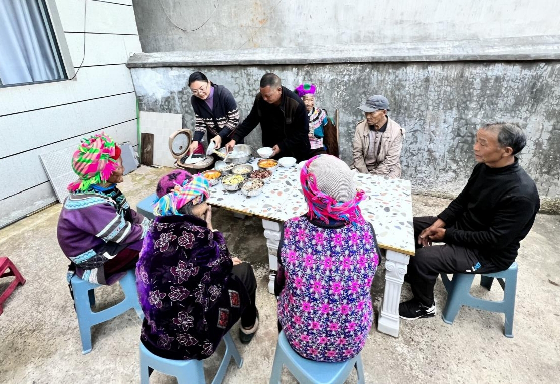 “小食堂”开启新生活,全力推动“老有所养”。毕家村委会妇联主席黄科菊积极带领巾帼志愿服务队成员,率先在上枳旧村民小组组建“家庭式小食堂”,通过“自己出一点、企业让一点、政府补一点、集体添一点、乡贤捐一点”等方式,多渠道筹措保障资金,先期筹集5000余元资金,启动小食堂运营。目前共有11名老年人、2名留守儿童参与就餐,老年人中,最大年龄86岁、最小68岁,每餐一荤三素一汤,开启了农村“一老一小”的幸福新生活。黄科菊带领志愿队成员帮助老人剥核桃赚零花钱,鼓励老人用自家种的蔬菜、养殖的禽蛋带到“小食堂”食用,折抵相应的就餐费用。