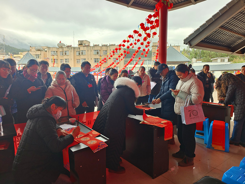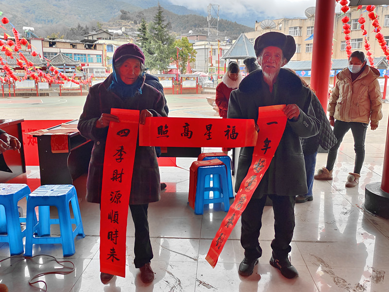 写春联、贴福字是中华民族的一项传统迎新春的方式。活动现场,来自楚雄民进开明画院的老师们将祝福凝于笔尖,写出一副副饱含吉祥寓意的春联作品。“迎新春事事如意,接好运步步高升”“一帆风顺年年好,万事如意步步高”“盛世千家乐,新春百家兴”,闻讯而来的发窝乡村民们纷纷挑选着自己喜欢的春联祝福带回家,个个脸上洋溢着幸福的笑容。