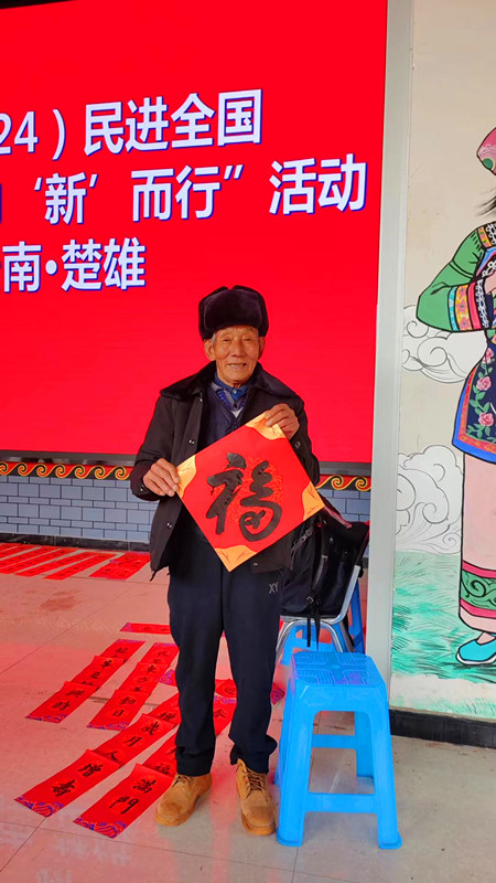 数九寒冬,北风冽冽。1月22日下午,伴随着2024年发窝乡的第一场雪。民进楚雄州委到发窝乡举行云南·楚雄甲辰(2024)民进全国“春联万家·向‘新’而行”活动。现场为发窝群众写“福”字、送对联,营造浓厚的节日氛围,把浓浓的年味和新春祝福送给发窝群众。
