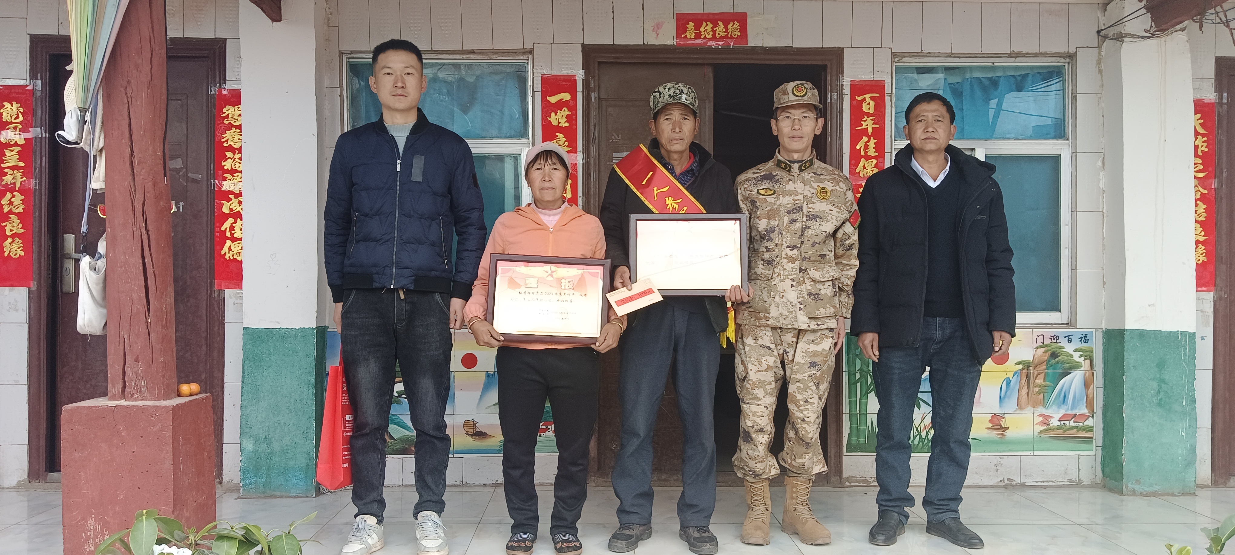 为大力弘扬拥军优属光荣传统,营造“一人参军、全家光荣”的浓厚氛围。1月24日,猫街镇副镇长、人民武装部长莫琨、镇退役军人服务站站长代国平一行赴五拃甸、七排、白云庵等5个村委会为我镇9名荣立三等功和“四有”优秀士兵的现役军人家庭送去立功喜报。