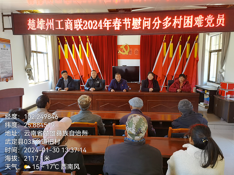 春节临近,年味渐浓。1月30日,楚雄州工商联副主席李聪荣率队到发窝乡分多村开展春节慰问送温暖活动,走访慰问困难党员、挂包联系户,为他们送上党和政府的深情关怀及节日的祝福。