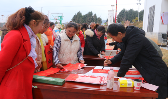 随着讲话结束,一支支由荣丰老年文艺队、社工志愿者、夕阳红文艺队带来的文艺舞蹈演出将全场的热情推到了最高点。演出结束后,伴随着现场的欢乐氛围,工作人员组织在场全体人员拍照留影。并召集所有在场儿童及监护人参与由志愿者组织的小游戏,游戏内容包括套圈、阅读、吹球等,小游戏的开展,极大增强了本次活动的趣味性,同时丰富了孩子们的假日生活。最后,武定县书法领域代表李进忠、李会荣、周建国三位老师给现场群众赠送书写春联。用一幅幅充满喜庆、吉祥、欢乐的春联,给广大居民群众送去了浓浓的年味和新春祝福。
