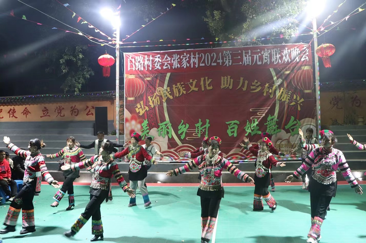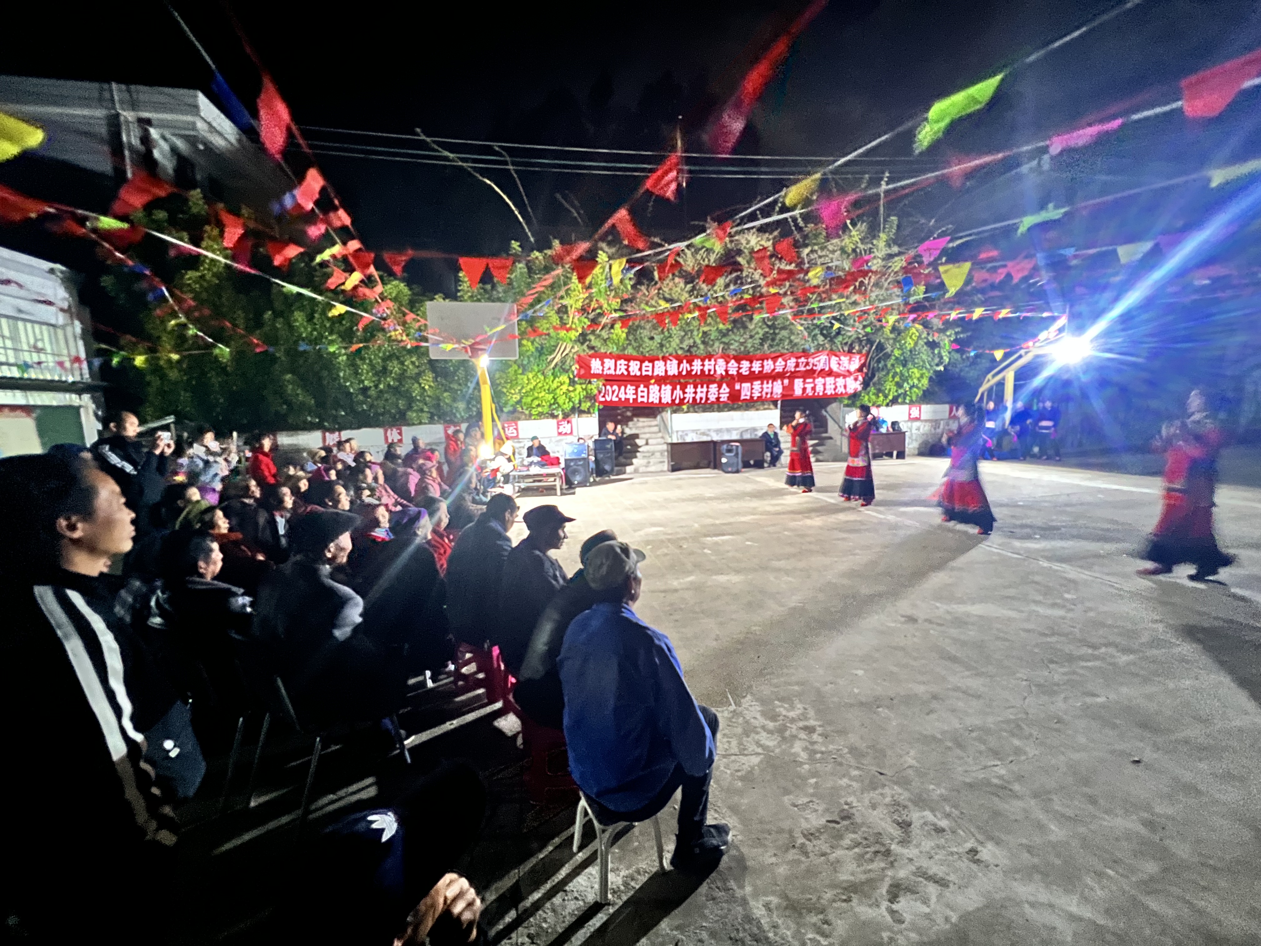 “咚咚咚,快到篮球场看村晚演出”随着一阵阵锣鼓一声声呐喊,白路镇白路村委会张家村村民小组的村民不约而同从家里往球场聚拢,原来,由群众自编、自导、自演的乡村村晚在正月十五登上张家村舞台,大家齐聚篮球场欢度元宵佳节。