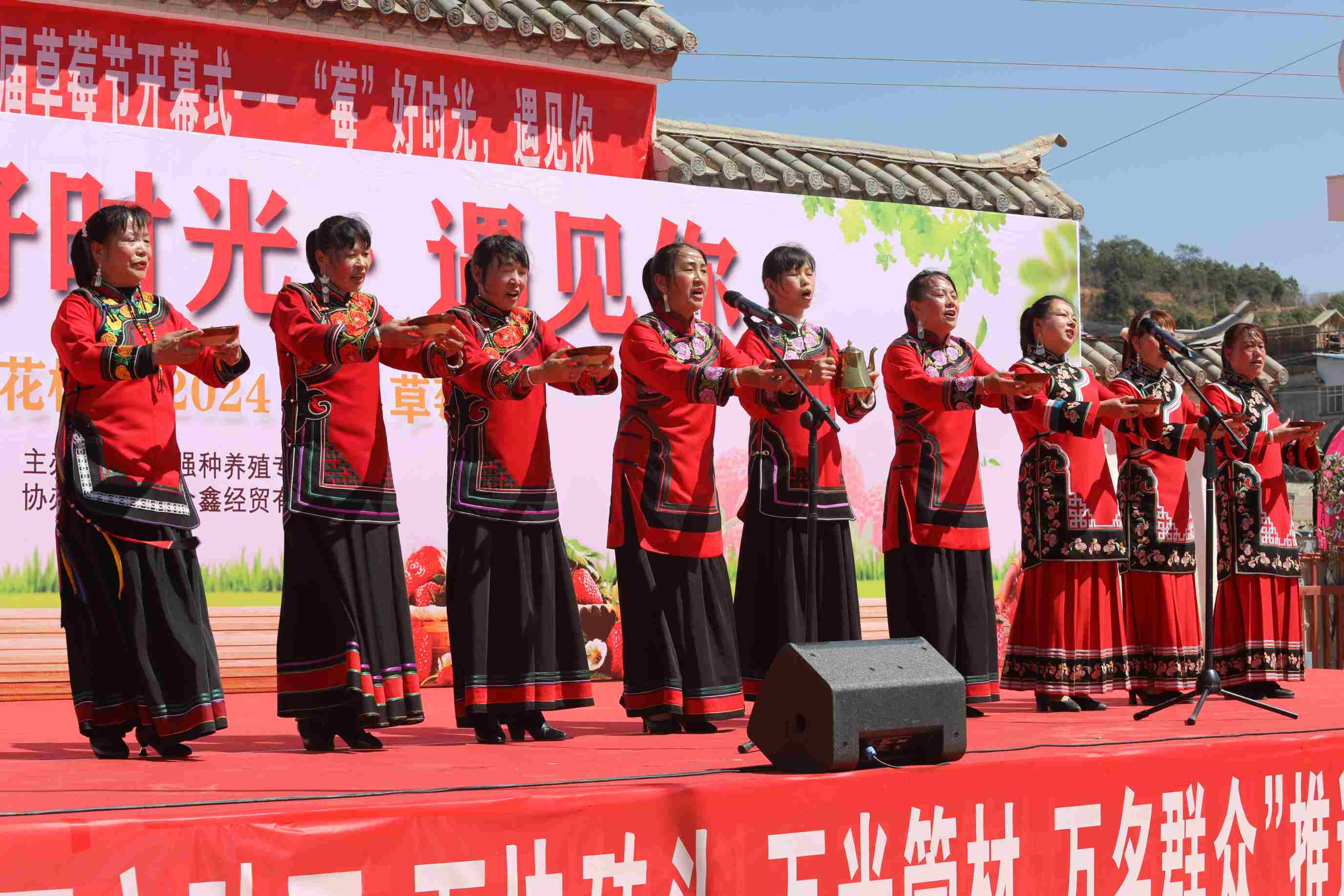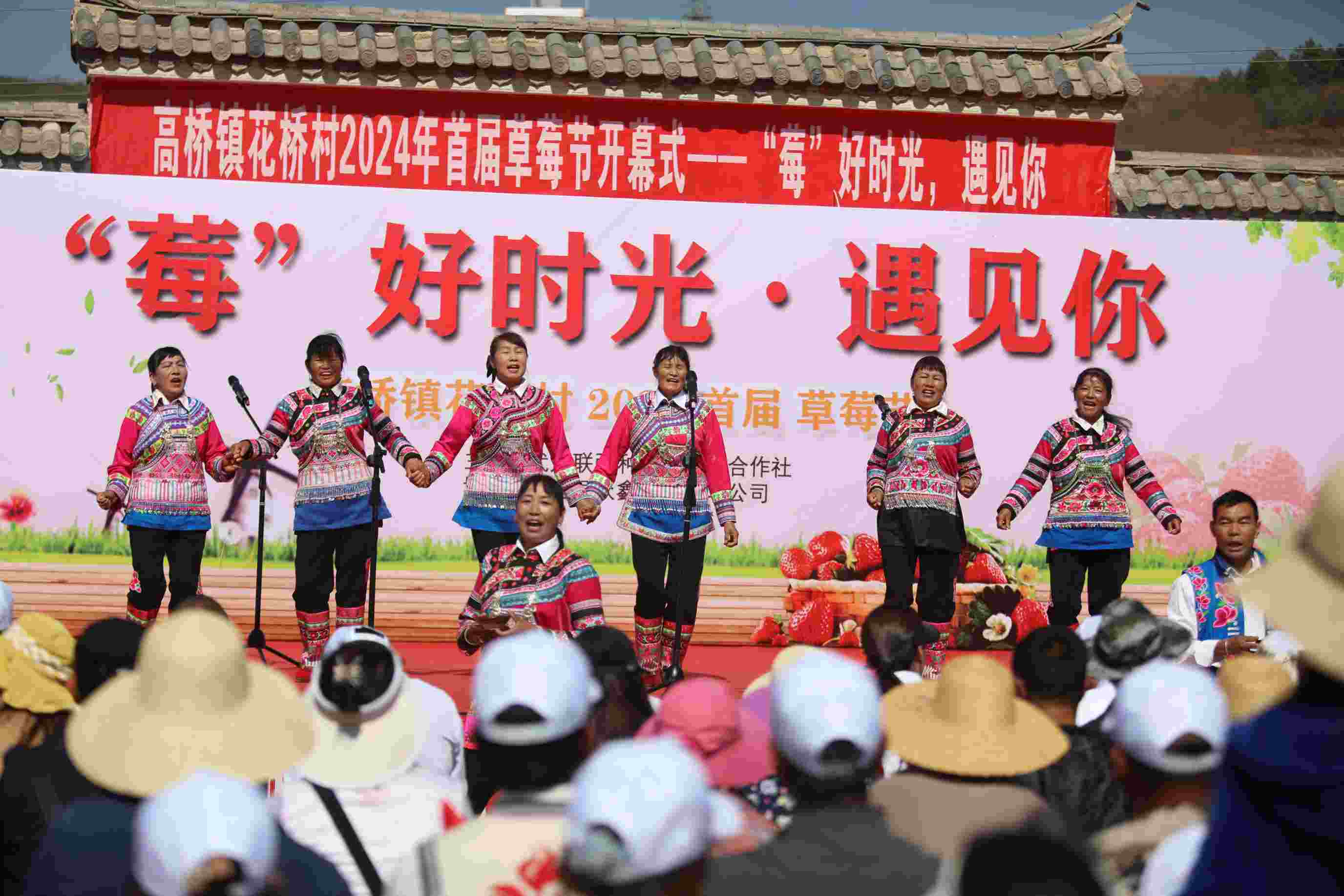 一场别开生面的“民俗酒歌”展演在高桥镇花桥村草莓节热烈上演,《迎客调》、《欢乐酒歌》、《苗家敬酒歌》等传统民俗酒歌轮番登场,令人入胜。
