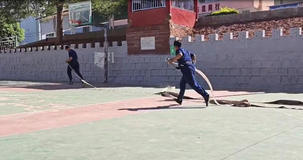 最后,东坡乡综合应急救援队在学校操场上开展了一场消防车水带灭火演练,让全校师生们了解消防车水带灭火整个过程、了解综合应急救援这支队伍,进一步提高师生的消防安全意识。