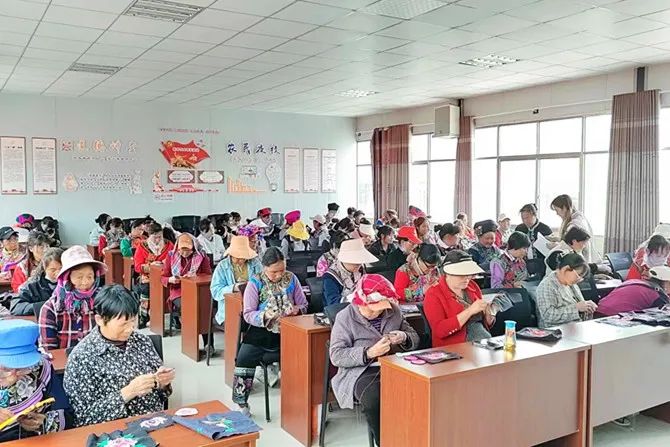 结业仪式上,每个学员手里都激动展示着自己完工的绣品,小的胸针,大的包包、衣服,针脚细密、色彩艳丽、图案清晰。“想不到打小学会的刺绣手艺,还能赚钱养家。”学员代表李梅翠拿着绣的第一个成品包开心道。培训结束后由普玉珍工作室对学员作品进行统一收购,让学员能够真真正正的实现将刺绣融入生活、变成产品、增加收入。